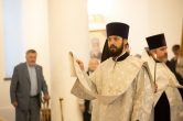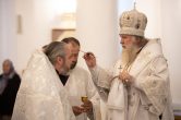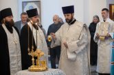 Его Высокопреосвященству сослужили: благочинный Сургутского городского благочиния протоиерей Антоний Исаков, благочинный Ханты-Мансийского благочиния протоиерей Сергей Кравцов, секретарь Ханты-Мансийской епархии игумен Антоний (Кирпичев), протоиерей Сергей Глухарев, диакон Даниил Матвеев.