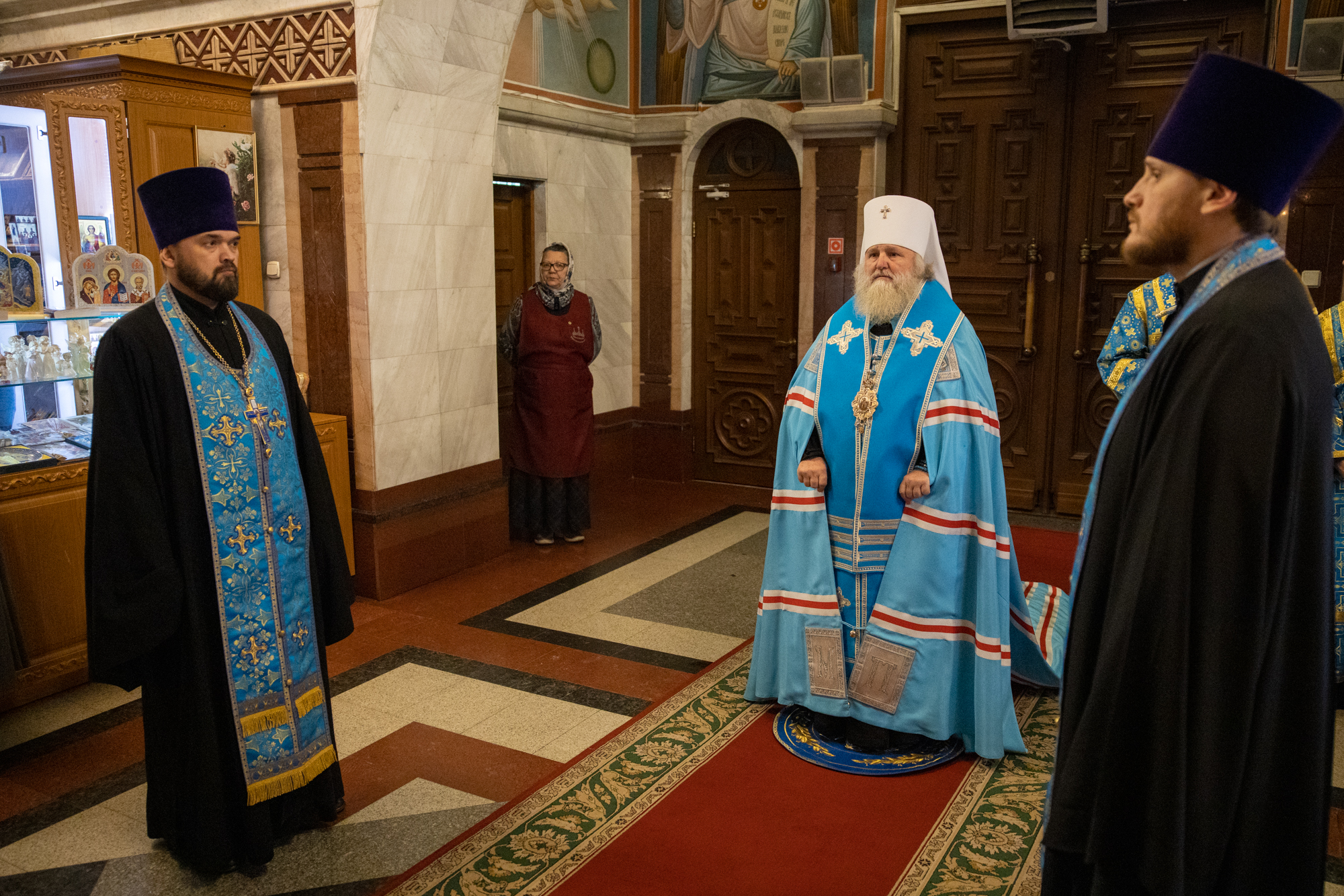 Его Высокопреосвященству сослужили: благочинный Ханты-Мансийского благочиния иерей Димитрий Губанищев, ключарь собора иерей Александр Петюр, духовенство собора.