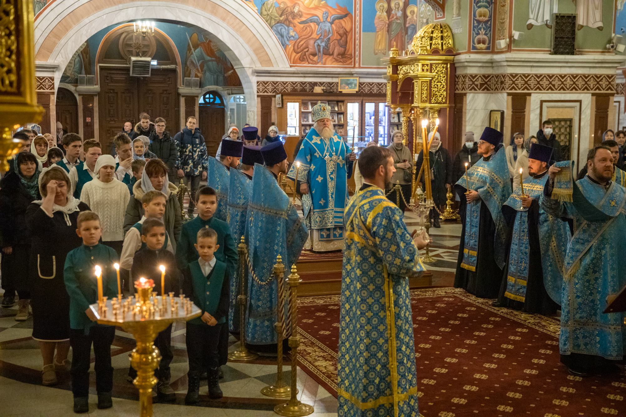 3 декабря 2025 года, в канун праздника Введения во храм Пресвятой Владычицы нашей Богородицы и Приснодевы Марии, митрополит Ханты-Мансийский и Сургутский Павел совершил всенощное бдение в Воскресенском кафедральном соборе г. Ханты-Мансийска.
