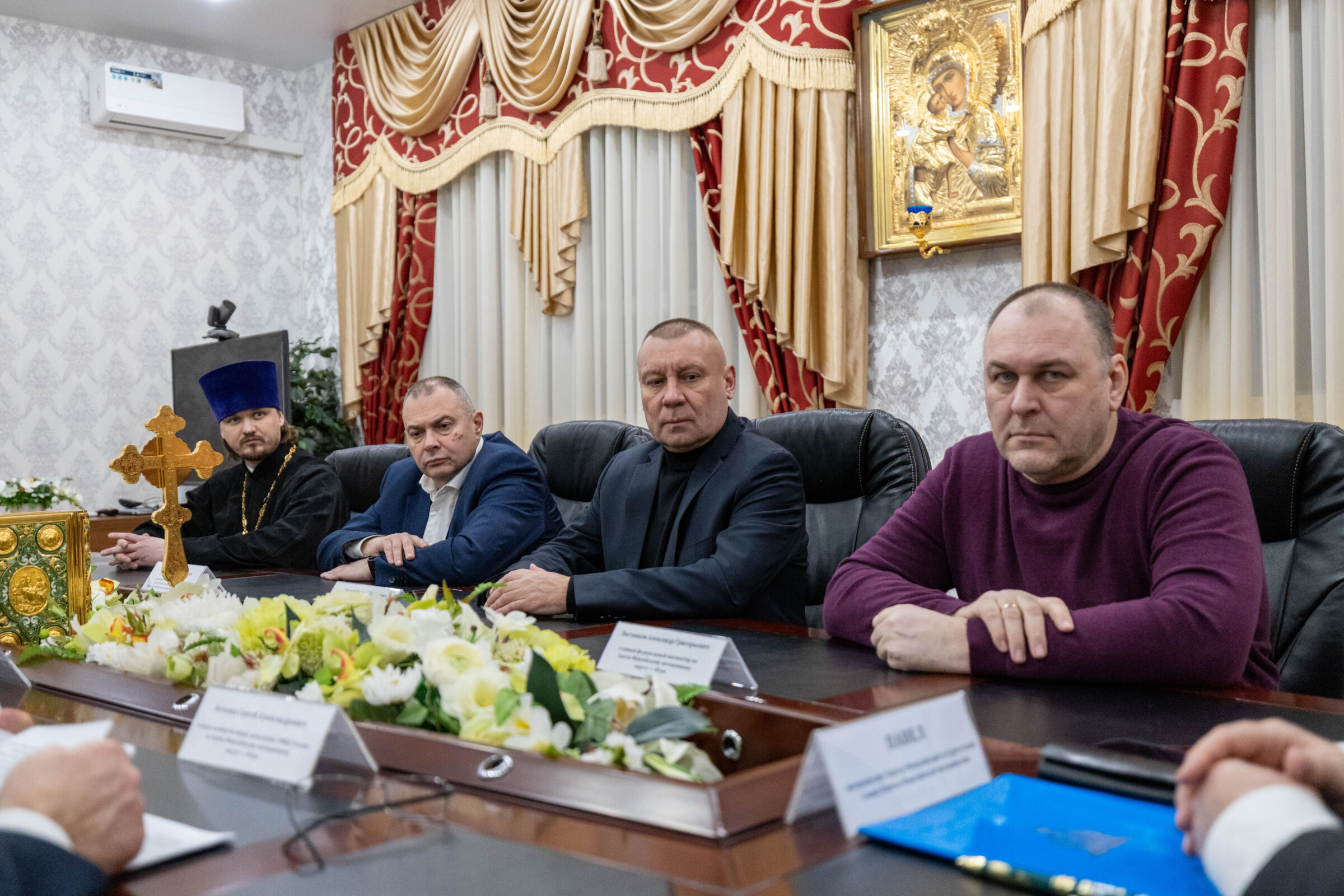Во встрече приняли участие Постников Александр Григорьевич — главный федеральный инспектор по Ханты-Мансийскому автономному округу — Югре; Ветохин Сергей Александрович, генерал-майор полиции, начальник УМВД России по Ханты-Мансийскому автономному округу — Югре; Симаков Евгений Евгеньевич — полковник полиции, начальник Управления Росгвардии по Ханты-Мансийскому автономному округу — Югре; Попов Дмитрий Иванович — прокурор Ханты-Мансийского автономного округа — Югры; Бирюк Михаил Михайлович — руководитель Управления Федеральной налоговой службы (УФНС) России по Ханты-Мансийскому автономному округу — Югре; игумен Антоний (Кирпичев) секретарь Ханты-Мансийской епархии; иерей Евгений Кизин председатель отдела по взаимодействию с Вооруженными Силами и правоохранительными учреждениями Ханты-Мансийской епархии.