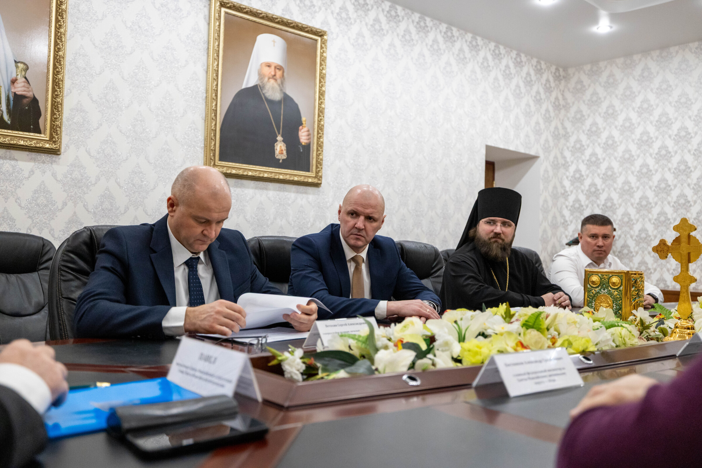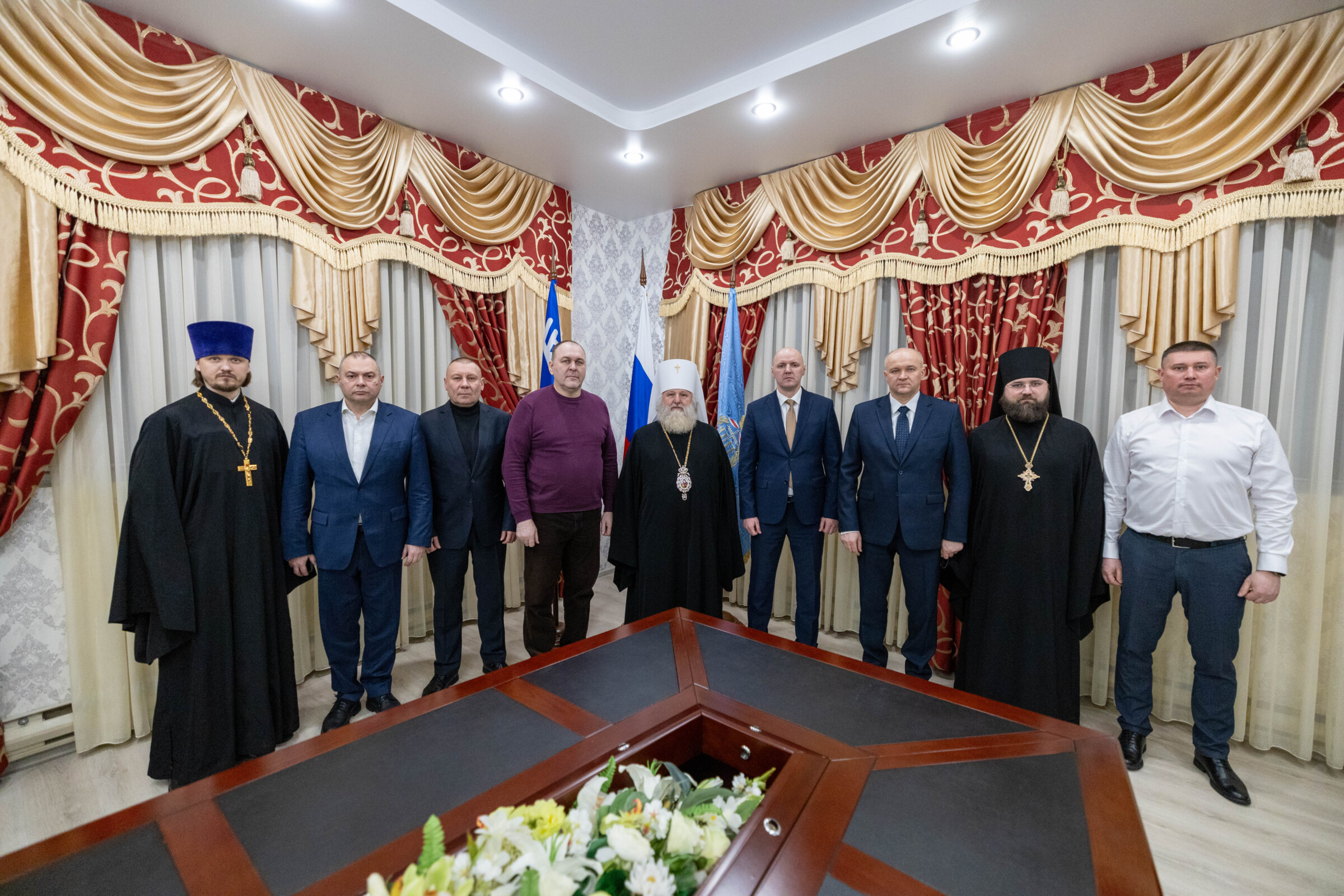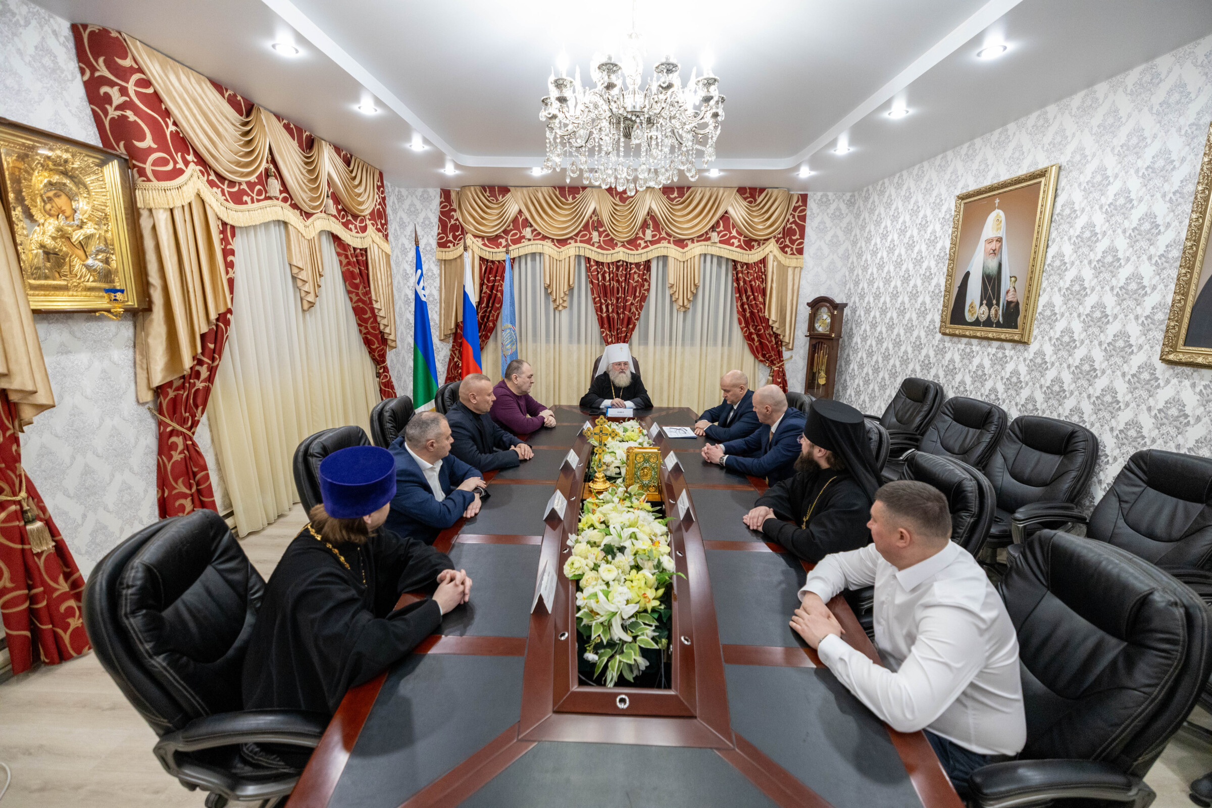 «Дорогие братья, я очень рад, что вы откликнулись на мое предложение. Хотел бы сегодня поговорить о том, что мы в Ханты-Мансийской епархии планируем подготовить проект соглашения о совместном сотрудничестве, соработничестве в плане духовного окормления наших и военнослужащих, и служащих во всех государственных структурах.