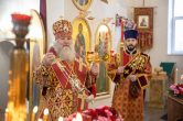 Его Высокопреосвященству сослужили: благочинный Нижневартовского городского благочиния протоиерей Сергий Шевченко, секретарь Ханты-Мансийской епархии игумен Антоний (Кирпичев), настоятель храма иерей Евгений Ефимов, иерей Константин Глухарев, иерей Димитрий Плотный, диакон Даниил Матвеев.