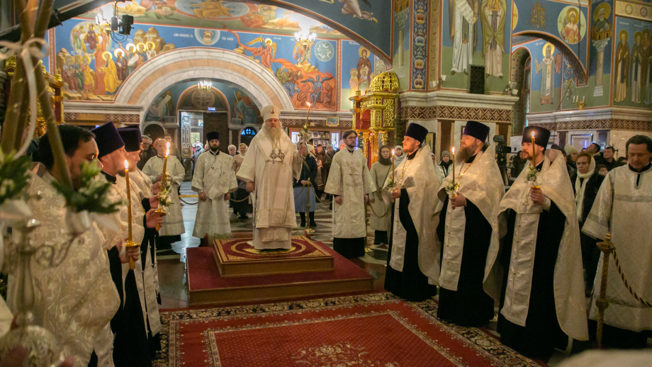 В канун Рождества Господа Бога и Спаса нашего Иисуса Христа митрополит Павел совершил вечернее богослужение в Воскресенском кафедральном соборе г. Ханты-Мансийска