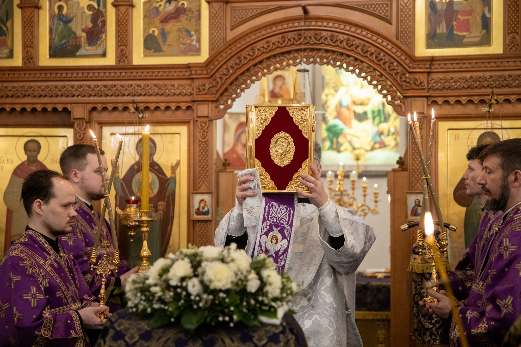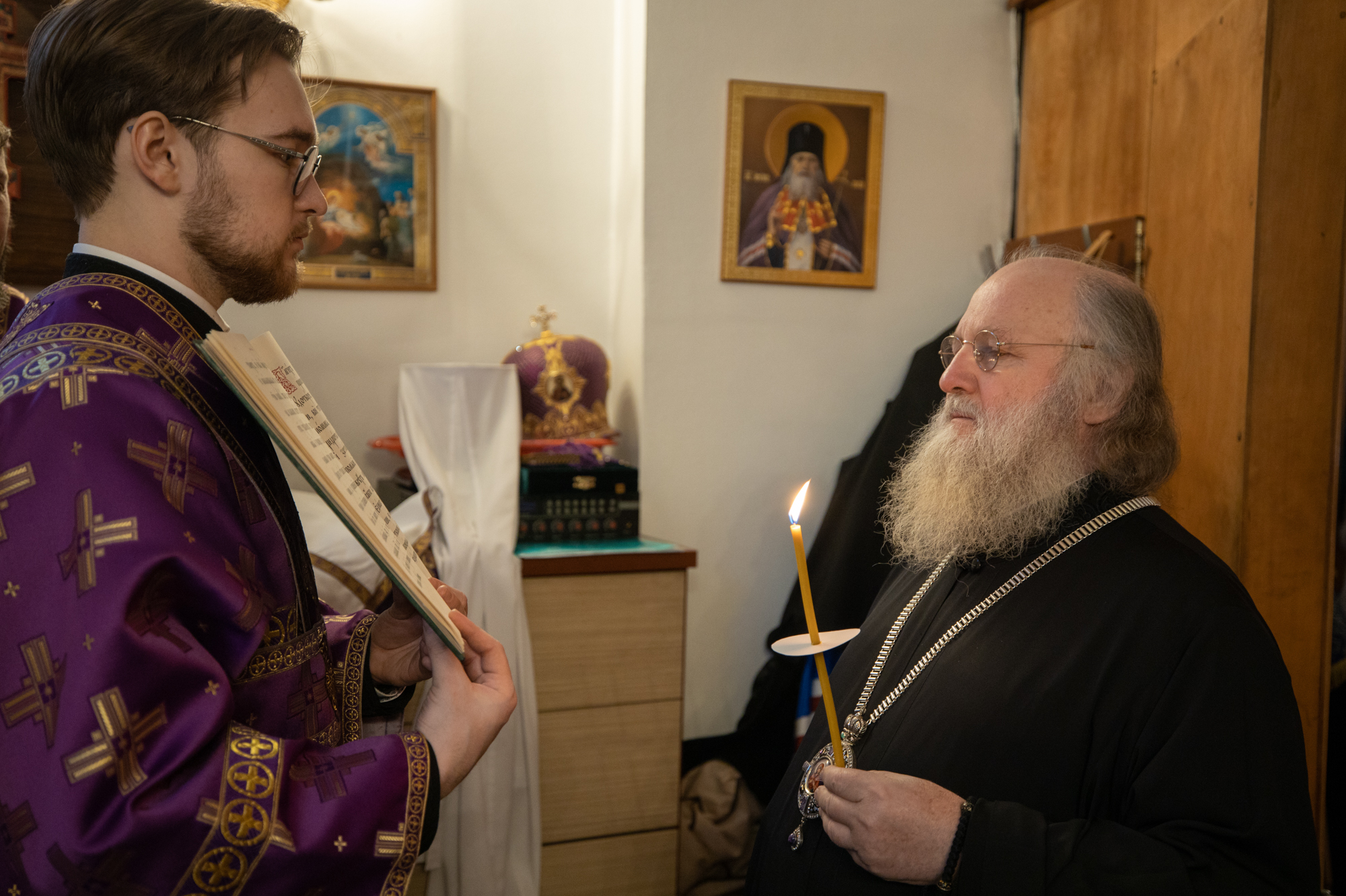 Его Высокопреосвященству сослужили: благочинный Сургутского городского благочиния протоиерей Антоний Исаков, настоятель храма иерей Николай Ведерников, иеромонах Никодим (Пирховский). Диаконский чин возглавил диакон Даниил Матвеев.