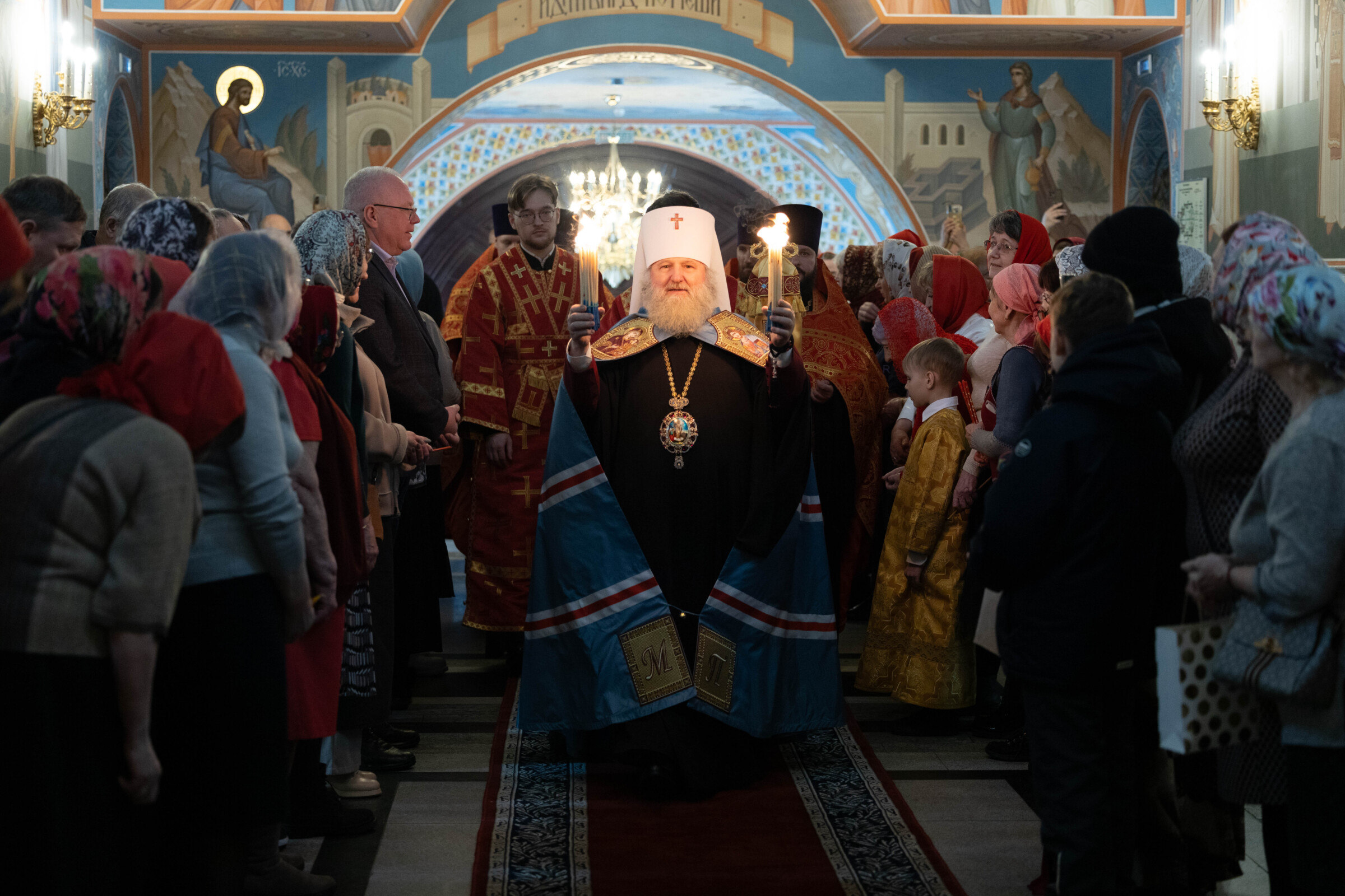 В канун Светлой среды митрополит Павел совершил утреню Пасхальным чином в храме в честь свт. Николая архиеп. Мир Ликийских чудотворца г. Сургута