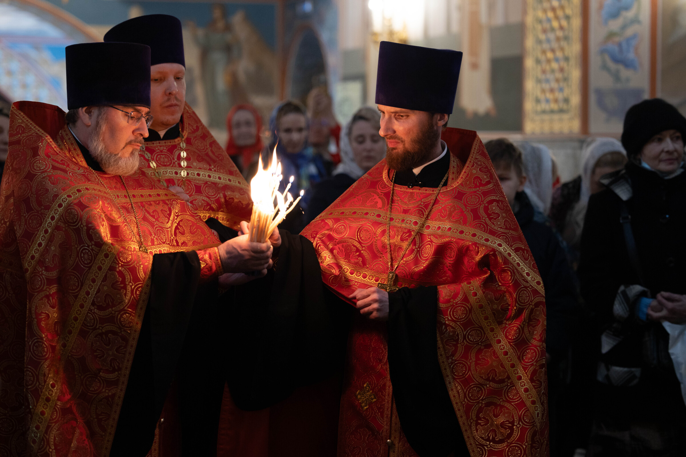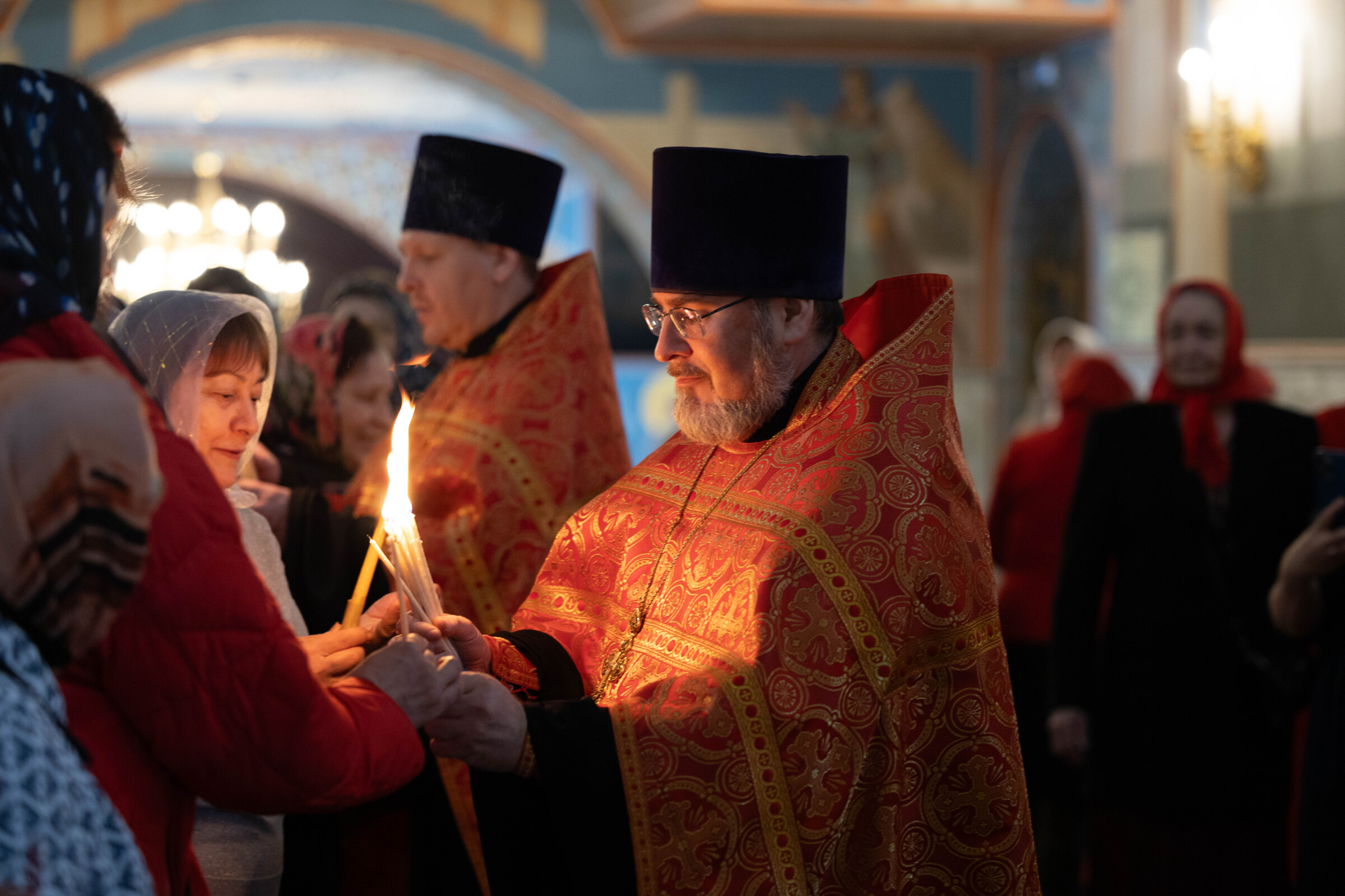 «Дорогие братья и сёстры, позвольте от сердца, от души всех поздравить с величайшим праздником, самым главным праздником нашей веры! Светлое Христово Воскресение! Целый год мы ждём этот праздник. И недаром преподобный Серафим Саровский, он стяжал этот праздник круглый год, и встречал всех, кто приходил к нему за духовным утешением, словами: «Радость моя, Христос Воскресе!» То есть он жил Воскресением, жил этим событием.