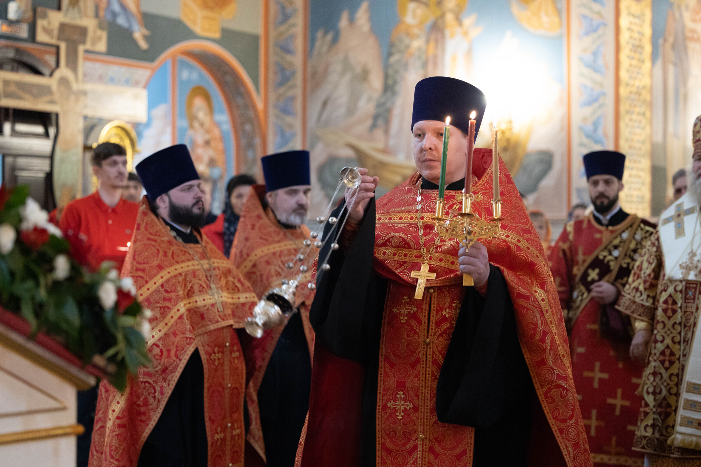 Его Высокопреосвященству сослужили: благочинный Сургутского городского благочиния протоиерей Антоний Исаков, секретарь Ханты-Мансийской епархии игумен Антоний (Кирпичев), ключарь храма иерей Александра Фокин, иерей Андрей Новичков, духовенство храма. Диаконский чин возглавил протодиакон Даниил Матвеев.