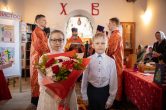 Сегодня мы привезли благодатный огонь — чудо Божие, которое Господь ниспосылает, как знак продления жизни на Земле. Господь ради избранных своих подаёт нам свою Божественную благодать, даёт возможность ко спасению. Дай Бог, чтобы мы использовали эту возможность в своей жизни. Поздравляю с праздником и желаю крепости сил, чтобы Воскресший Христос наполнял нашу жизнь в наших семьях, в нашем Отечестве и во всём мире. Христос Воскресе!»