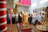 Его Высокопреосвященству сослужили: благочинный Нижневартовского городского благочиния протоиерей Сергий Шевченко, секретарь Ханты-Мансийской епархии игумен Антоний (Кирпичев), настоятель храма иерей Владимир Лисин, диакон Даниил Матвеев.