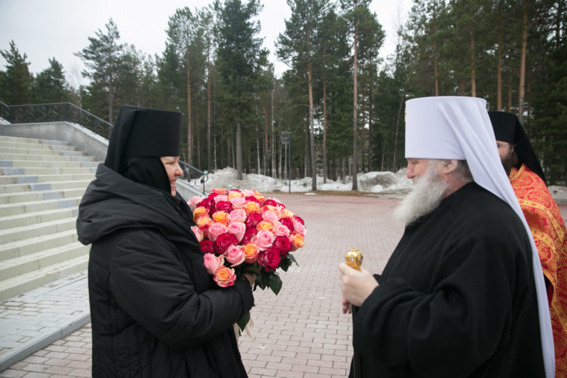 «Дорогая матушка игуменья, сестры, братья и сестры, позвольте от сердца, от души, поздравить всех с величайшим праздником Пасхи Христовой, самым большим праздником, который есть в христианстве! Кульминация и сила это праздника в том, что Господь совершает спасительную миссию для рода человеческого. Он побеждает Ад, совершая победу жизни над смертью, избавляет род человеческий от греха, проклятия и смерти, даёт человеку все спасительные средства, возможность совоскреситься и быть причастником жизни вечной. Недаром апостол Павел говорит: «Если не воскрес Христос, то и вера наша тщетна». А Воскресение Христово- это венец спасения рода человеческого. Господь благоволит нам и каждый год, в Великую Субботу ниспосылает нам свой Благодатный огонь, как символ продления жизни на Земле. Мы благодарим Бога за Его безмерную любовь, которую Он являет роду человеческому, и мы с вами, как последователи веры во Христа, должны нести эту любовь окружающему нас миру. Храни всех Господь, поздравляю всех, мои дорогие, с этим величайшим праздником, Христос Воскресе!»