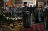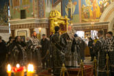 Богослужение завершили чтения прокимна, паремии, Апостола и Евангелия перед Святой Плащаницей.