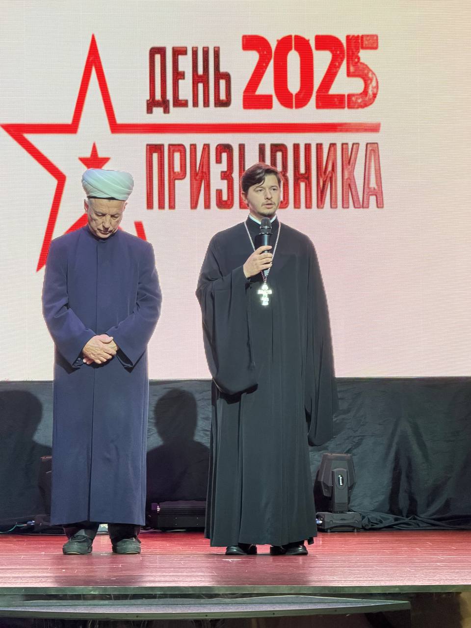 29.10.2025 года в Когалыме в молодёжном центре «Метро» состоялись торжественные проводы в ряды Вооруженных Сил, в котором принял участие клирик храма святой мученицы Татианы г. Когалыма иерей Тихон Морозан.