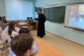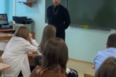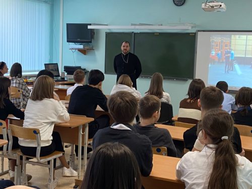 В рамках сотрудничества Прихода храма Покрова Божий Матери с общеобразовательными учреждениями г.Лянтора, прошла очередная встреча священника со старшеклассниками шестой школы.