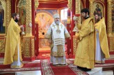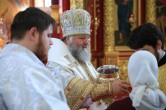 Его Высокопреосвященству сослужили: заведующий епархиальной канцелярией, иерей Сергий Нагорный, иерей Вячеслав Фомин, иерей Андрей Венза, диакон Даниил Матвеев.