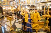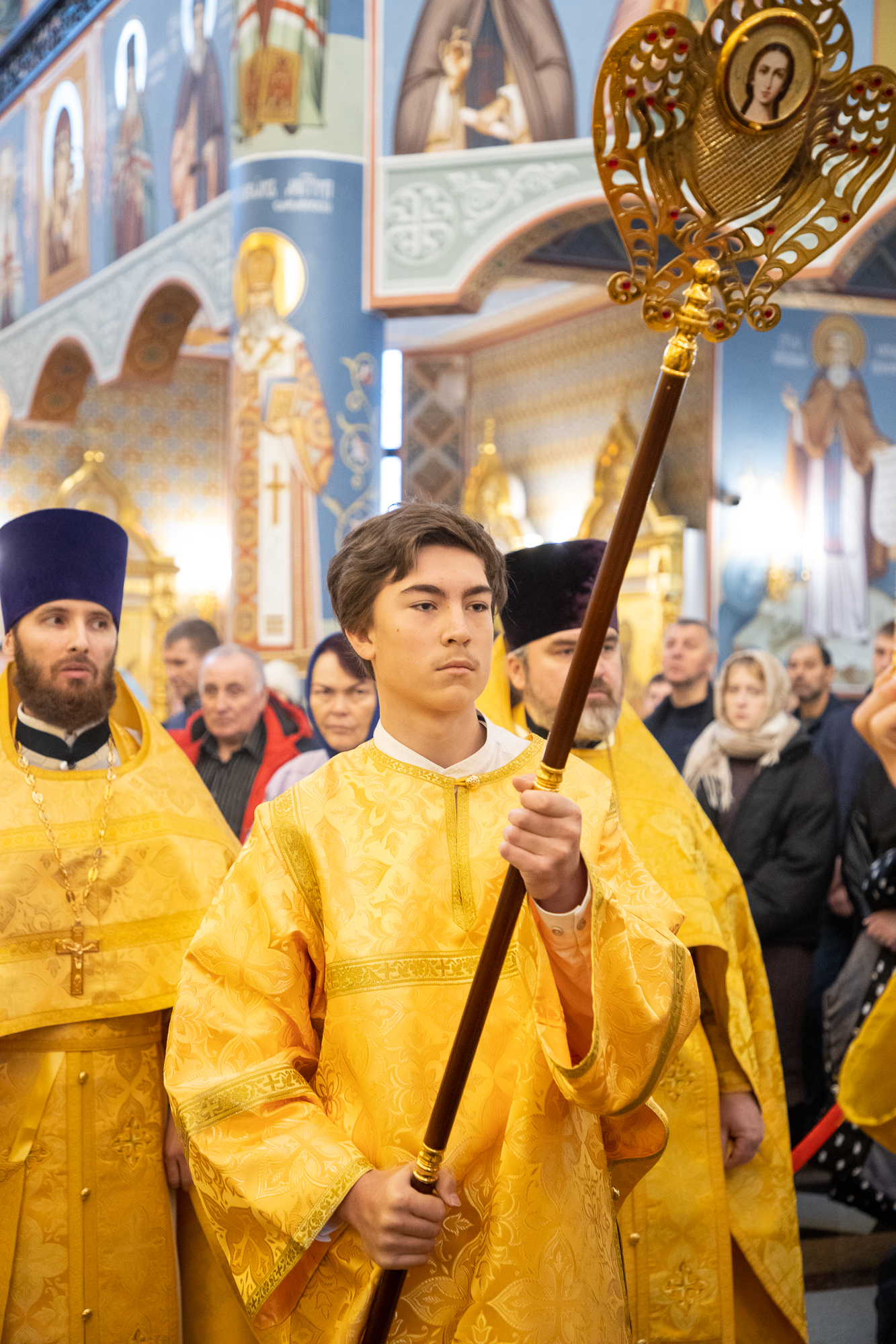 Его Высокопреосвященству сослужили: благочинный Сургутского городского благочиния протоиерей Антоний Исаков, секретарь Ханты-Мансийской епархии игумен Антоний (Кирпичев), иерей Андрей Новичков, иерей Павел Кравцов. Диаконский чин возглавил диакон Даниил Матвеев.