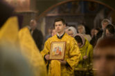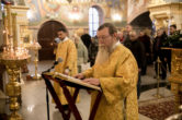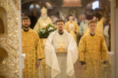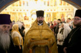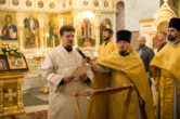 На сугубой ектении были вознесены особые прошения, секретарь Ханты-Мансийской епархии игумен Антоний (Кирпичев) прочитал молитву о Святой Руси.