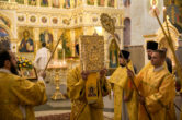 В Неделю 19-ю по Пятидесятнице, памяти святых отцов VII Вселенского Собора, митрополит Ханты-Мансийский и Сургутский Павел совершил Божественную литургию в Преображенском кафедральном соборе г. Сургута