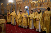 Его Высокопреосвященству сослужили: благочинный Сургутского городского благочиния протоиерей Антоний Исаков, секретарь Ханты-Мансийской епархии игумен Антоний (Кирпичев), ключарь собора иерей Дионисий Безносов, иерей Антоний Долгушин, духовенство собора.