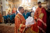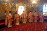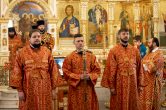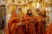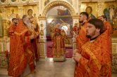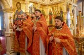 Его Высокопреосвященству сослужили: благочинный Сургутского городского благочиния протоиерей Антоний Исаков, секретарь Ханты-Мансийской епархии игумен Антоний (Кирпичев), ключарь собора иерей Дионисий Безносов, протоиерей Василий Чаплак, иерей Антоний Долгушин. Диаконский чин возглавил диакон Даниил Матвеев.