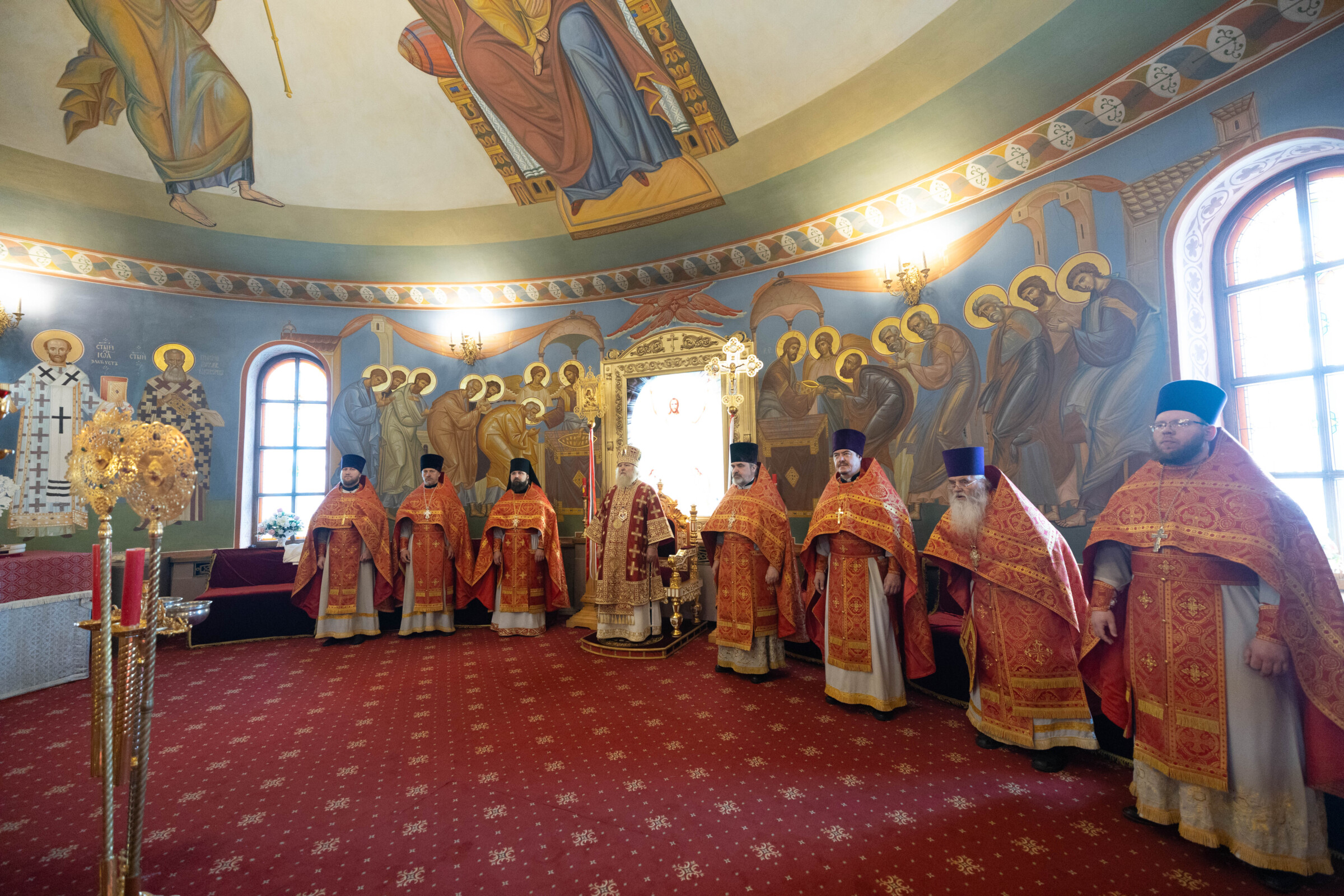 Его Высокопреосвященству сослужили: благочинный Сургутского городского благочиния протоиерей Антоний Исаков, секретарь Ханты-Мансийской епархии игумен Антоний (Кирпичев), ключарь собора иерей Григорий Белянин, духовенство собора. Диаконский чин возглавил протодиакон Даниил Матвеев.