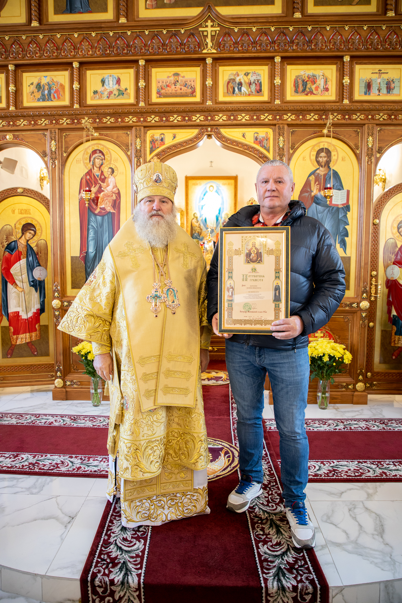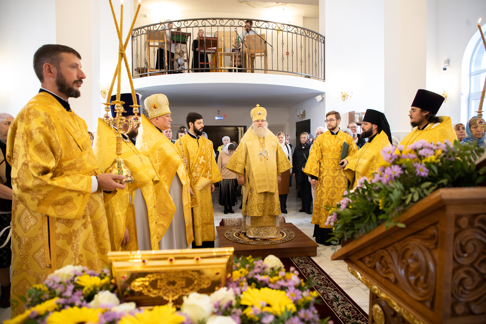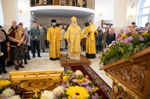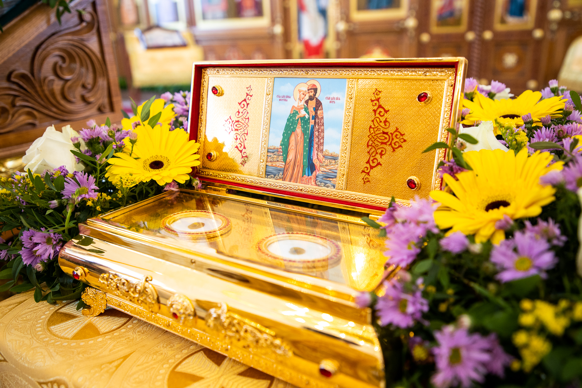 Перед началом Богослужения в храм, на вечное хранение, был принесен ковчег с мощами благоверных князей Петра и Февронии Муромских.