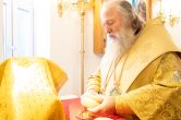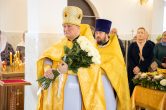 Конечно, хотел бы сказать, что сегодня для нас, для нашего храма в честь Петра и Февронии — особенный день. Сегодня за Божественной литургией молятся и помогают, утешают нас эти благоверные князья — Пётр и Феврония. Они прибыли сегодня частицами своих мощей и пребывают вместе с нами. Конечно, это милость Божия — великая и безмерная. Он так устроил, что и храм в честь святых построился и они прибыли к нам из Муромской епархии. Потому что мы молились и просили. И Господь дает нам по делам нашим и ходатайствам, видя наши чаяния, посылает нам свою Божественную благодать. Редко есть такое, что в храме находятся мощи тех, кому он посвящен. И этот новый храм- место просвещения, где в этой части нашего города славится имя Божие, и пусть этот светильник зажигает сердца и души приходящих в этот храм и соединяющихся со своим Творцом. Храни всех Господь!»