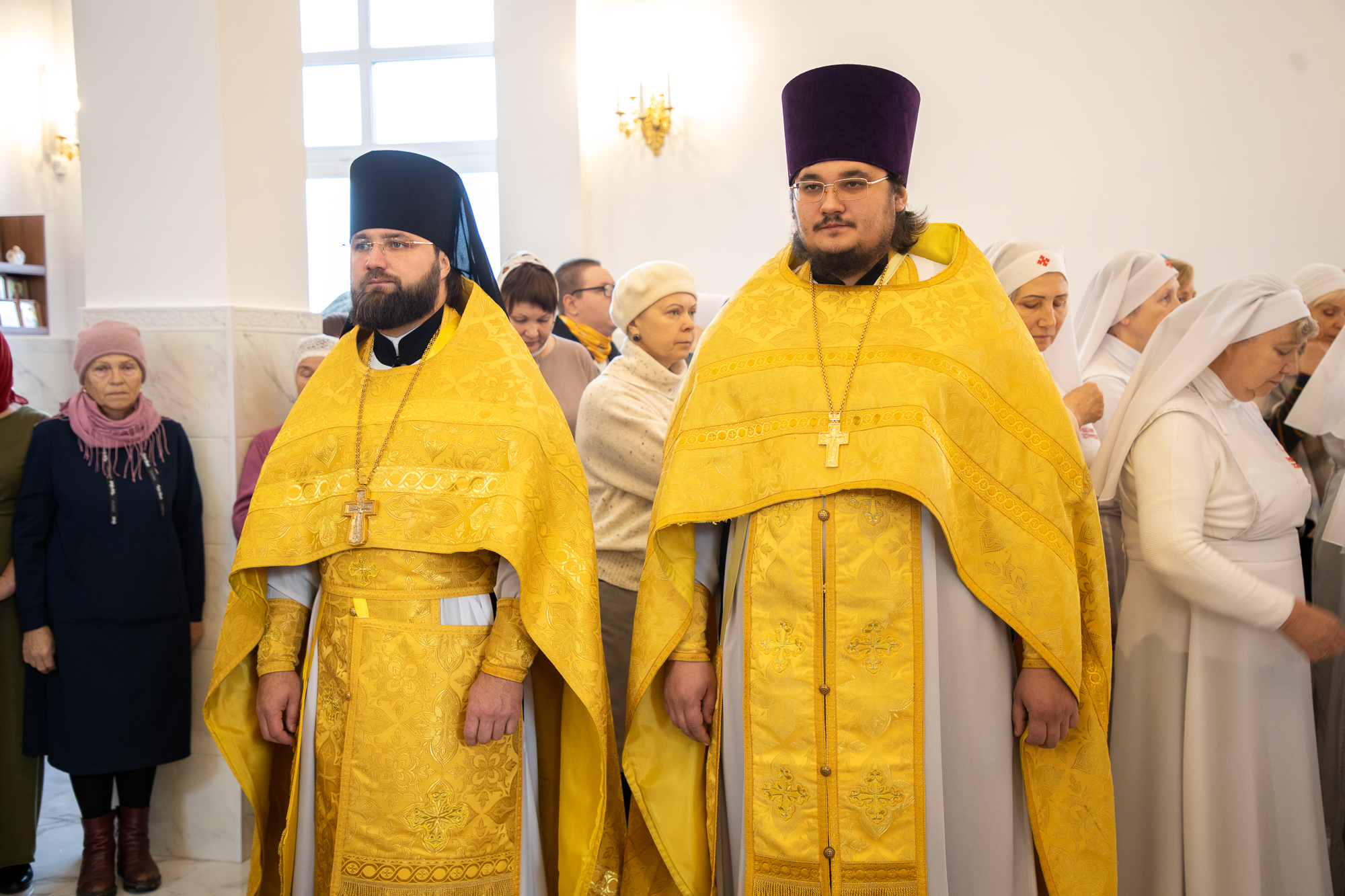 Его Высокопреосвященству сослужили: благочинный Ханты-Мансийского благочиния протоиерей Сергей Кравцов, секретарь Ханты-Мансийской епархии игумен Антоний (Кирпичев), иерей Леонид Бартков, иерей Александр Власкин. Диаконский чин возглавил диакон Даниил Матвеев.
