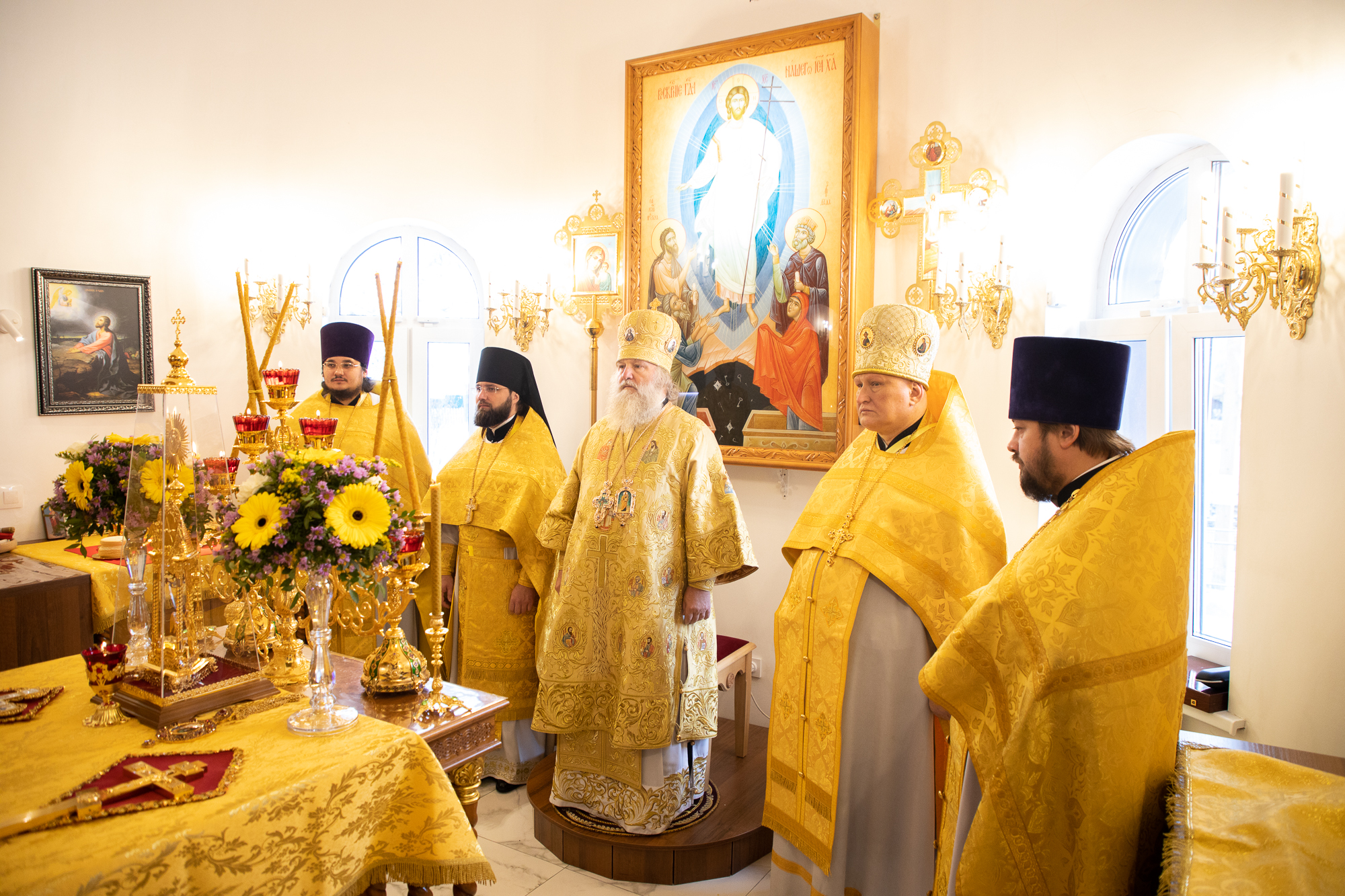 В Неделю 20-ю по Пятидесятнице митрополит Павел совершил Литургию в храме в честь благоверных князей Петра и Февронии Муромских г. Ханты-Мансийска.