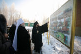 Владыка, мы от лица братии благодарим Вас за Ваше всегдашнее попечение о монастыре, за то, что Вы наполняете этот храм святынями, ведь, то, что здесь сегодня есть – и копии чудотворных икон и частица мощей, это Ваш бесценный вклад, бесценный дар, для того, чтобы люди, которые приезжают не только из Ханты-Мансийска, из других городов, здесь духовно укреплялись и утешались. От лица братии хотелось бы сделать Вам памятный подарок, чтобы он всегда был рядом с Вами, рядом с вашим сердцем. Мы приготовили для вас святую панагию с изображением той главной святыни, которую Вы нам передали – Иверской иконы Божией Матери с нашим монастырским храмом, с предстоящими святителем Димитрием Ростовским и преподобным Павлом Обнорским, Вашим небесным покровителем. Пусть эта святая панагия в этот юбилейный год всегда напоминает Вам об этой службе в стенах этого храма, и мы всегда здесь, ежедневно, творим молитву о Вашем здравии, чтобы Господь даровал Вам сил, здравия нести тот архипастырский крест, который на Вас возложен священноначалием, многая и благая Вам лета!»