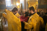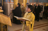 На сугубой ектении были вознесены молитвенные прошения в связи с угрозой распространения коронавирусной инфекции, а также прошение о врачах: «Призри Владыко Человеколюбие на жертвенный подвиг врачей наших, посли им здравие непоколебимое, силу и крепость духа, мудрость к совершению трудов во благо народа нашего и сотвори чрез них исцеление страждущим рабом Твоим, прилежно молим Ти ся скоро услыши и помилуй».