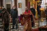 На сугубой ектении были вознесены молитвенные прошения в связи с угрозой распространения коронавирусной инфекции.