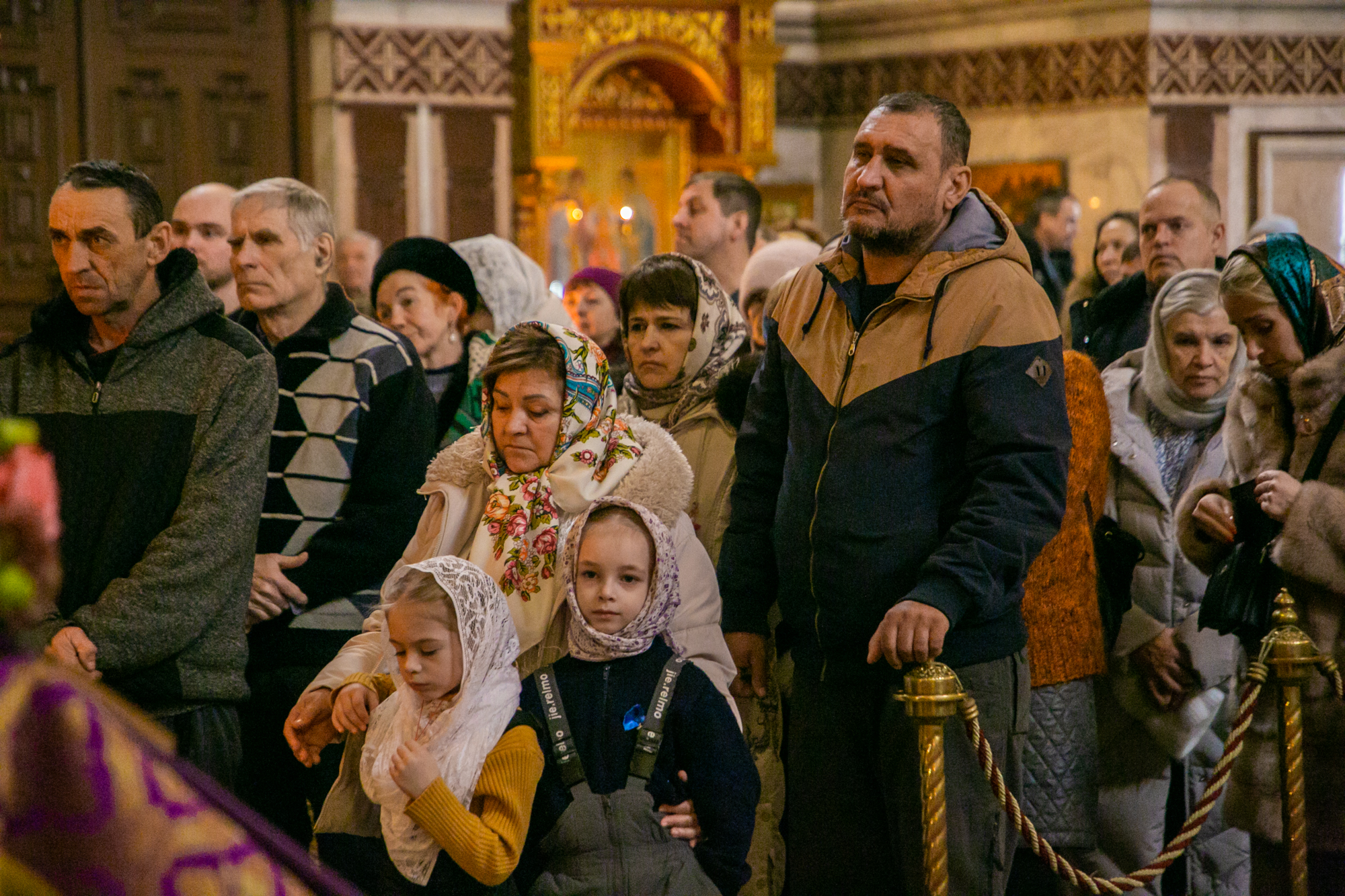 На мирной и сугубой ектениях были вознесены молитвы о Российском воинстве, о мире и о здравии Святейшего Патриарха Московского и всея Руси Кирилла, в связи с 50-летием архиерейской хиротонии.