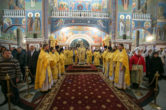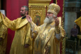 По окончании Богослужения владыка обратился к собравшимся: «Дорогие братья и сестры, позвольте от сердца, от души, поздравить всех с праздником Воскресения Господа нашего Иисуса Христа! Мы с вами слышали евангельское повествование об исцеленных, и так мало благодарящих за исцеление. Из 10-ти только один пришел поблагодарить Господа за его исцеление. Но как же важно нам всем благодарить Бога за его благодеяния, помнить об этом! Когда у нас все хорошо, мы мало вспоминаем о Боге, большинство приходит в храм только тогда, когда с ними происходит беда. Мы недооцениваем милость и помощь и любовь Божию к нам, и только попадая в трудные условия и обстоятельства, начинаем задумываться. Но даже за то малое, как нам кажется, за здравие, пищу и кров, должны мы благодарить Господа. За каждый новый день, который дарует нам Господь, должны мы благодарить его. Помоги нам Господи сознавать, понимать и благодарить Тебя за все благодеяния, которые ты нам даёшь! Всех вас, мои дорогие, с праздником, желаю крепости сил духовных и физических, чтобы милость и помощь Божия содействовала и сопутствовала всем нам!»