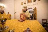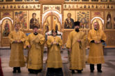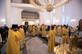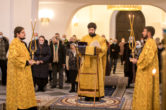 На сугубой ектении были вознесены молитвенные прошения в связи с угрозой распространения коронавирусной инфекции, а также прошение о врачах: «Призри Владыко Человеколюбие на жертвенный подвиг врачей наших, посли им здравие непоколебимое, силу и крепость духа, мудрость к совершению трудов во благо народа нашего и сотвори чрез них исцеление страждущим рабом Твоим, прилежно молим Ти ся скоро услыши и помилуй».