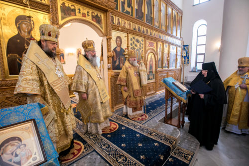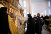 По окончании богослужения со словами поздравления к митрополиту Павлу обратилась настоятельница женского монастыря в честь иконы Божией Матери «Умиление» игумения Григория: