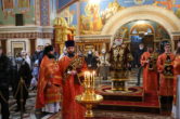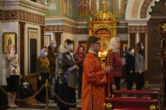 На сугубой ектении были вознесены молитвенные прошения в связи с угрозой распространения коронавирусной инфекции, а также прошение о врачах: «Призри Владыко Человеколюбие на жертвенный подвиг врачей наших, посли им здравие непоколебимое, силу и крепость духа, мудрость к совершению трудов во благо народа нашего и сотвори чрез них исцеление страждущим рабом Твоим, прилежно молим Ти ся скоро услыши и помилуй».