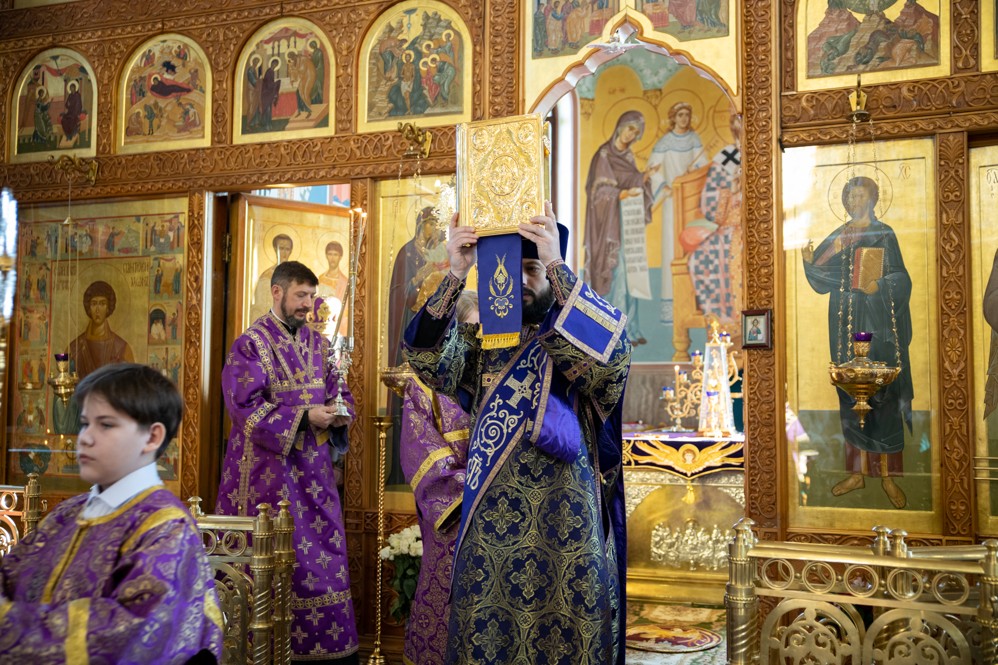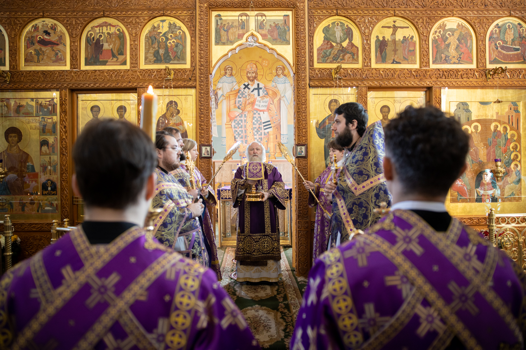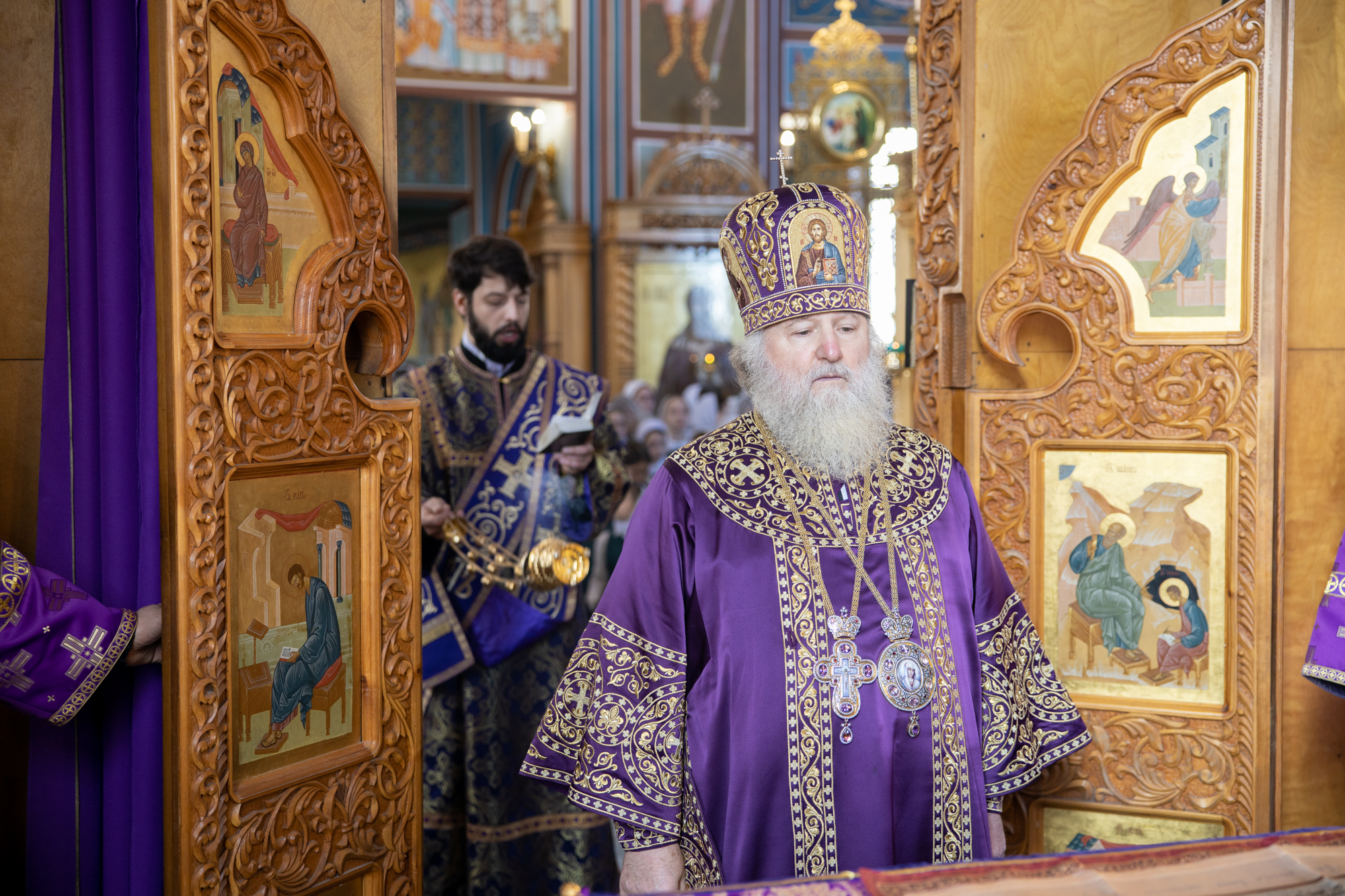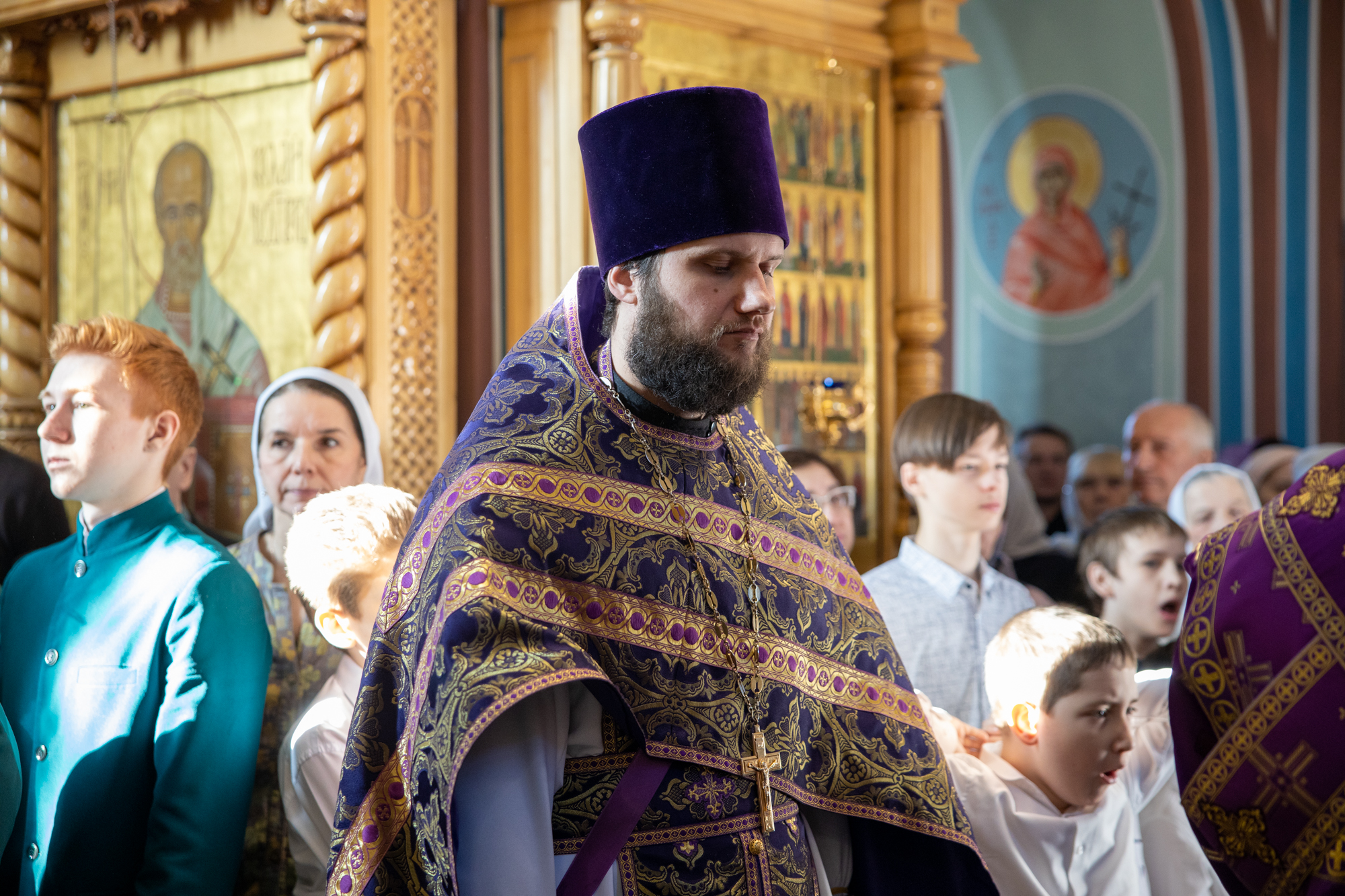 Его Высокопреосвященству сослужили: благочинный Нефтеюганского благочиния протоиерей Николай Матвийчук, секретарь Ханты-Мансийский епархии игумен Антоний (Кирпичев), духовенство храма, диакон Даниил Матвеев.