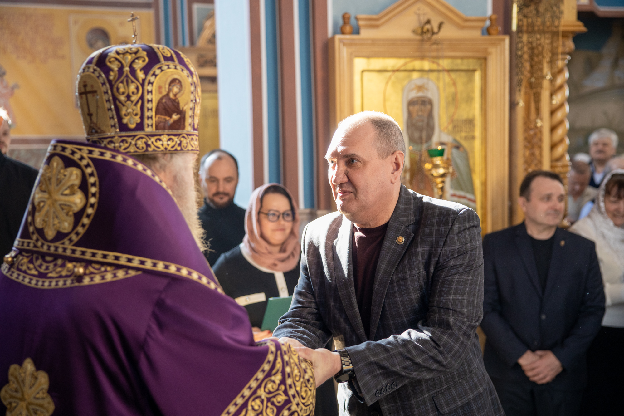 На богослужении присутствовали: глава г. Нефтеюганска Чекунов Юрий Васильевич, помощник заместителя председателя думы ХМАО-Югры Владимира Николаевича Семенова Елена Сергеевна Архипова.
