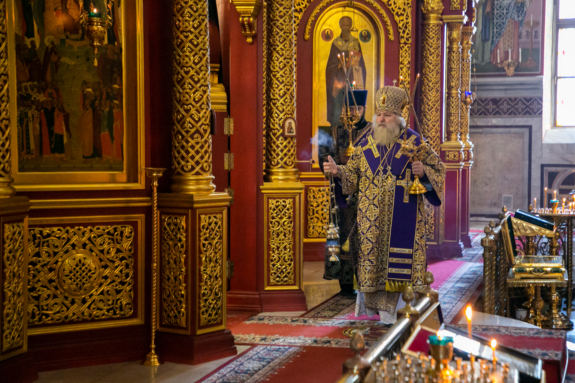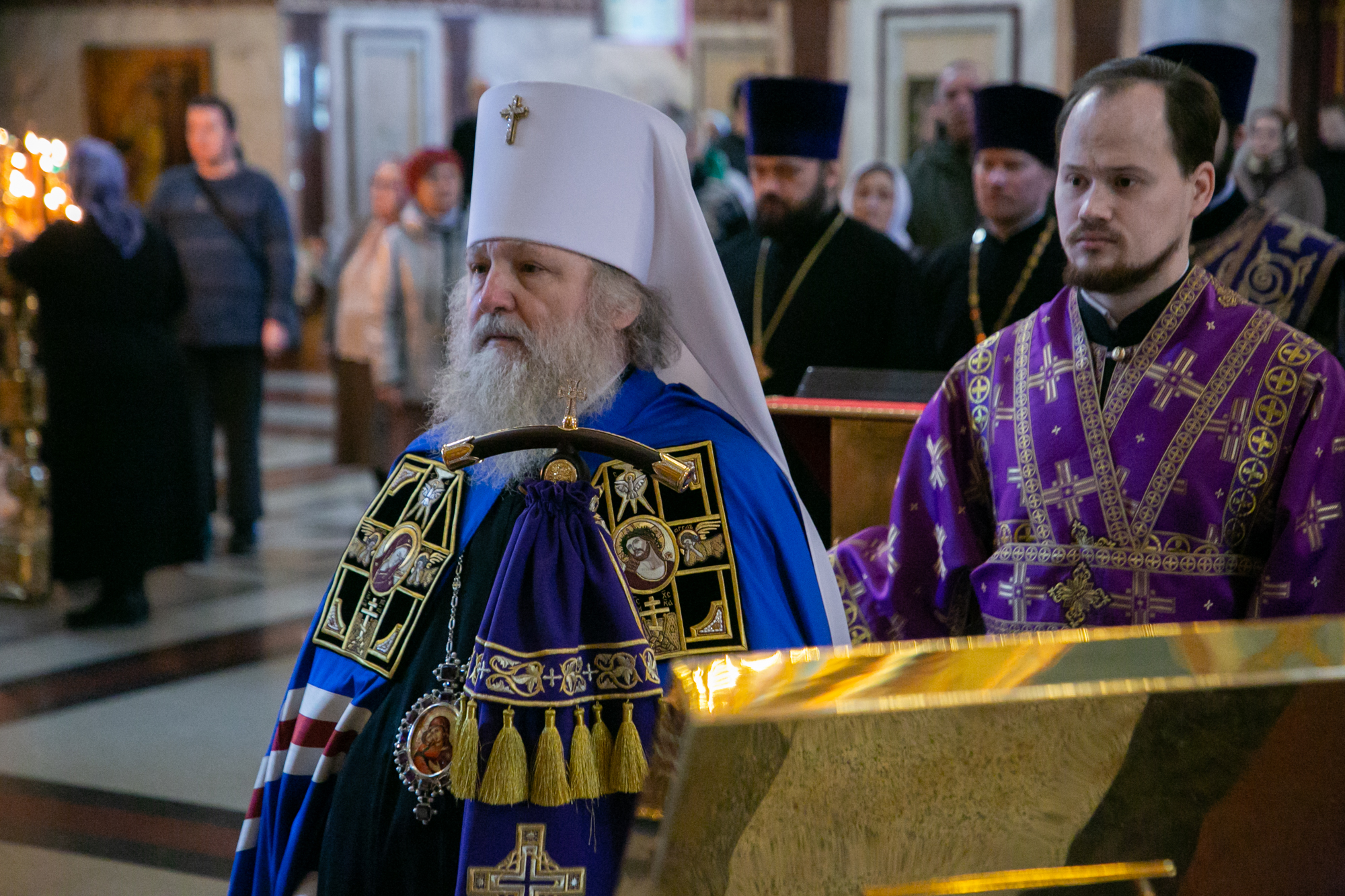 Его Высокопреосвященству сослужили: благочинный Ханты-Мансийского благочиния иерей Димитрий Губанищев, духовенство собора.