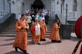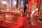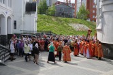 После завершения Литургии частица мощей блж. Матроны Московской была перенесена митрополитом Павлом и сопровождавшим его духовенством Ханты-Мансийского благочиния из Воскресенского кафедрального собора в храм Покрова Божией Матери г. Ханты-Мансийска для молитвенного поклонения верующих.
