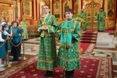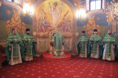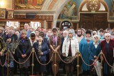 Его Высокопреосвященнству сослужили: руководитель отдела образования и катехизации иерей Губанищев Димитрий, ключарь собора, иерей Нагорный Сергий, эконом епархии, иерей Петюр Александр, иерей Белянин Григорий, иерей Фомин Вячеслав, диакон Матвеев Даниил, диакон Логвин Игорь, диакон Барыкин Сергий.