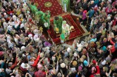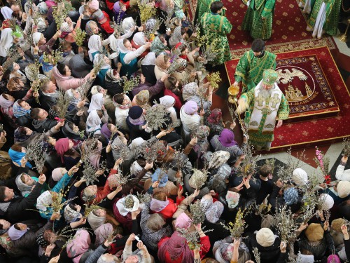 «Дорогие отцы, братия и сестры! Сердечно поздравляю вас с праздником Вход Господень в Иерусалим. Мы сегодня вспоминаем событие, когда Господь входил в Иерусалим, и люди постилали Ему одежды. Христос входил в Храм Божий и как сказано в Священном Писании, «Народ, сидящий во тьме, увидел свет великий, и сидящим в стране и тени смертной воссиял свет» (Мф. 4:16) — свет Христов.