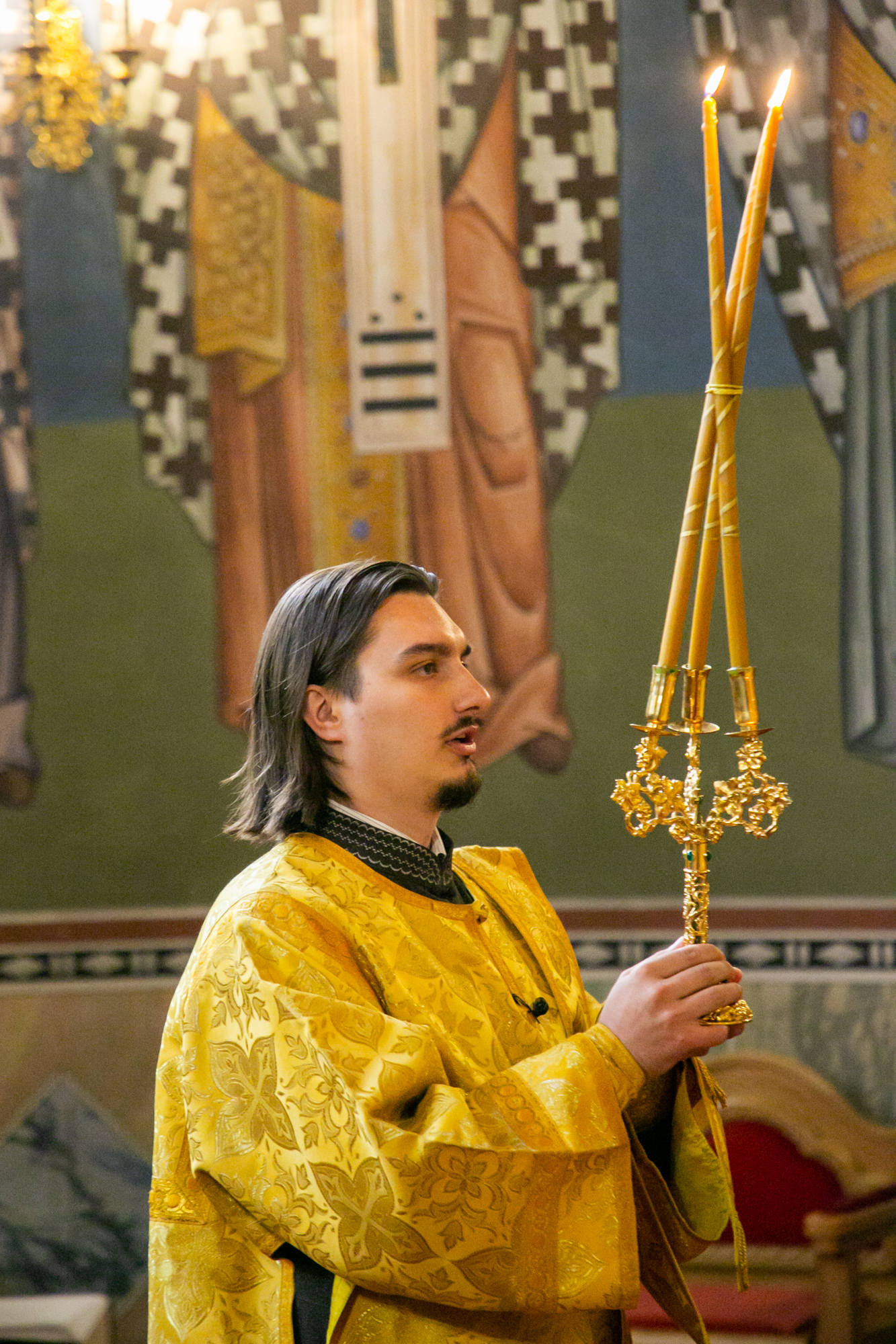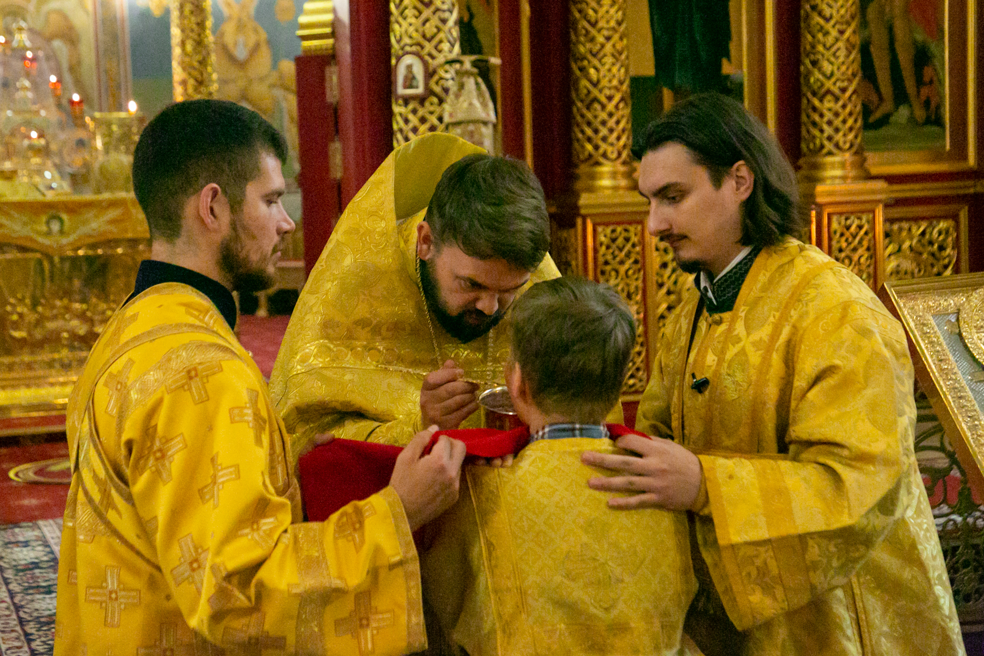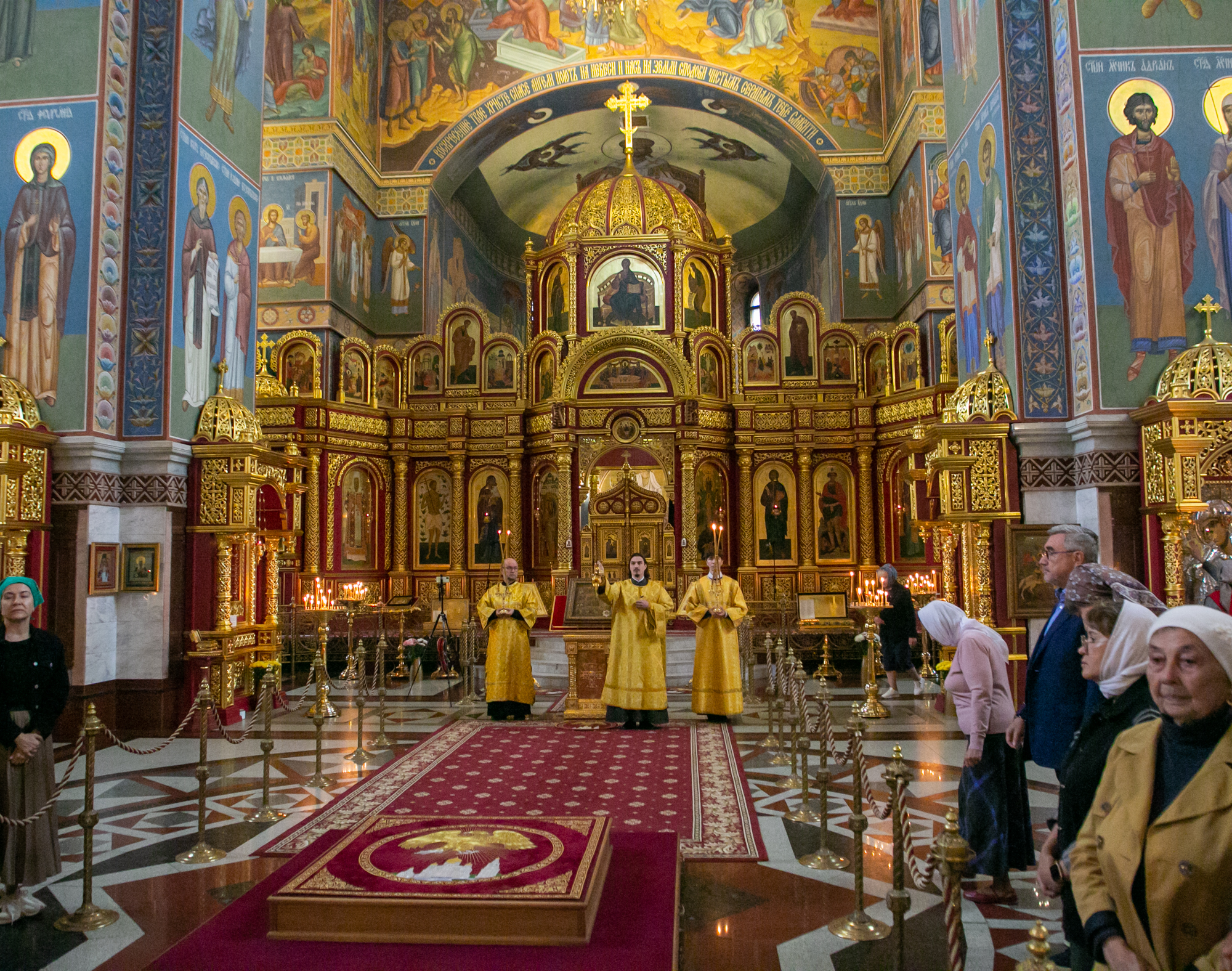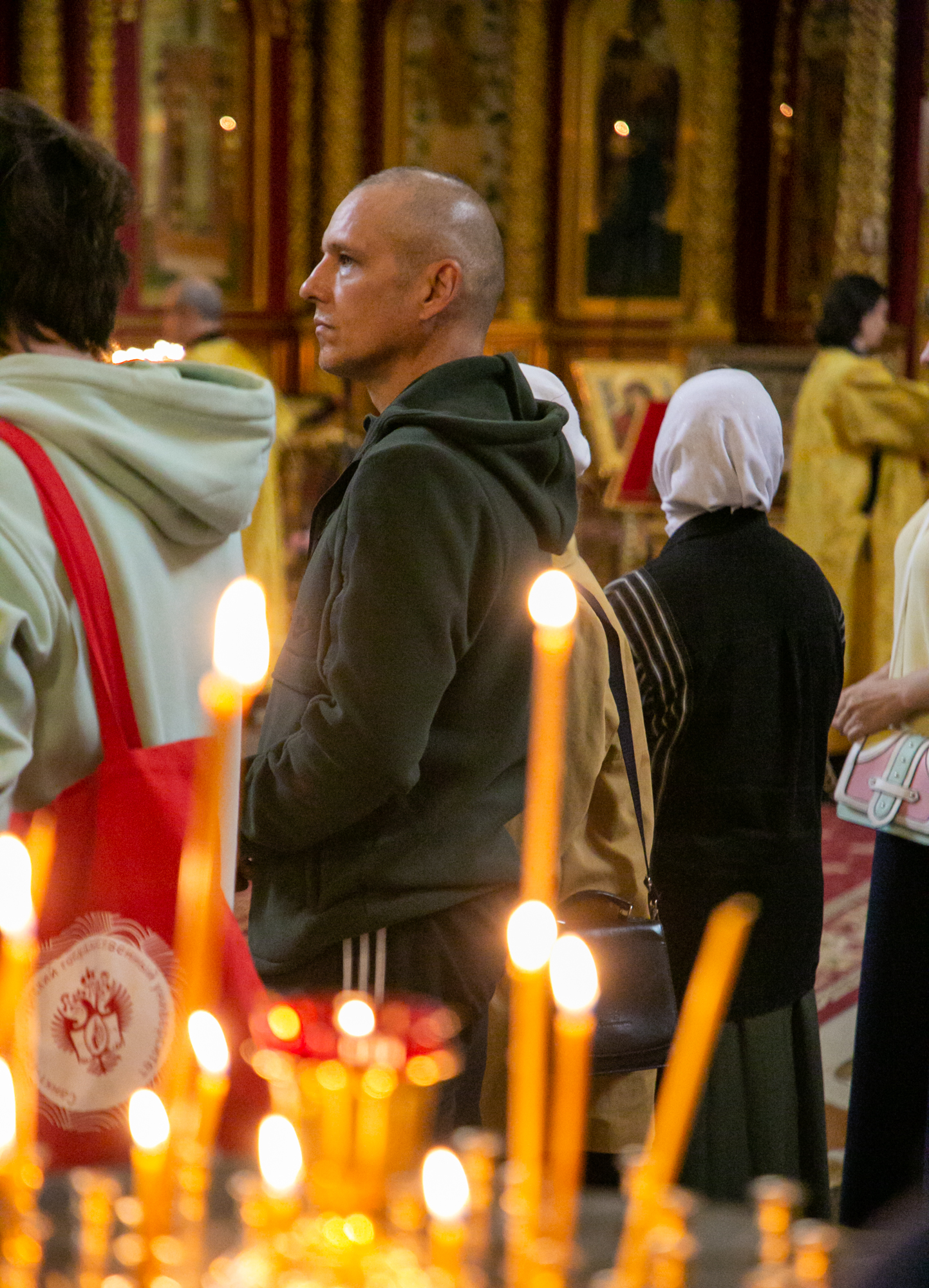 На мирной и сугубой ектениях были вознесены молитвы о Российском воинстве и о мире.