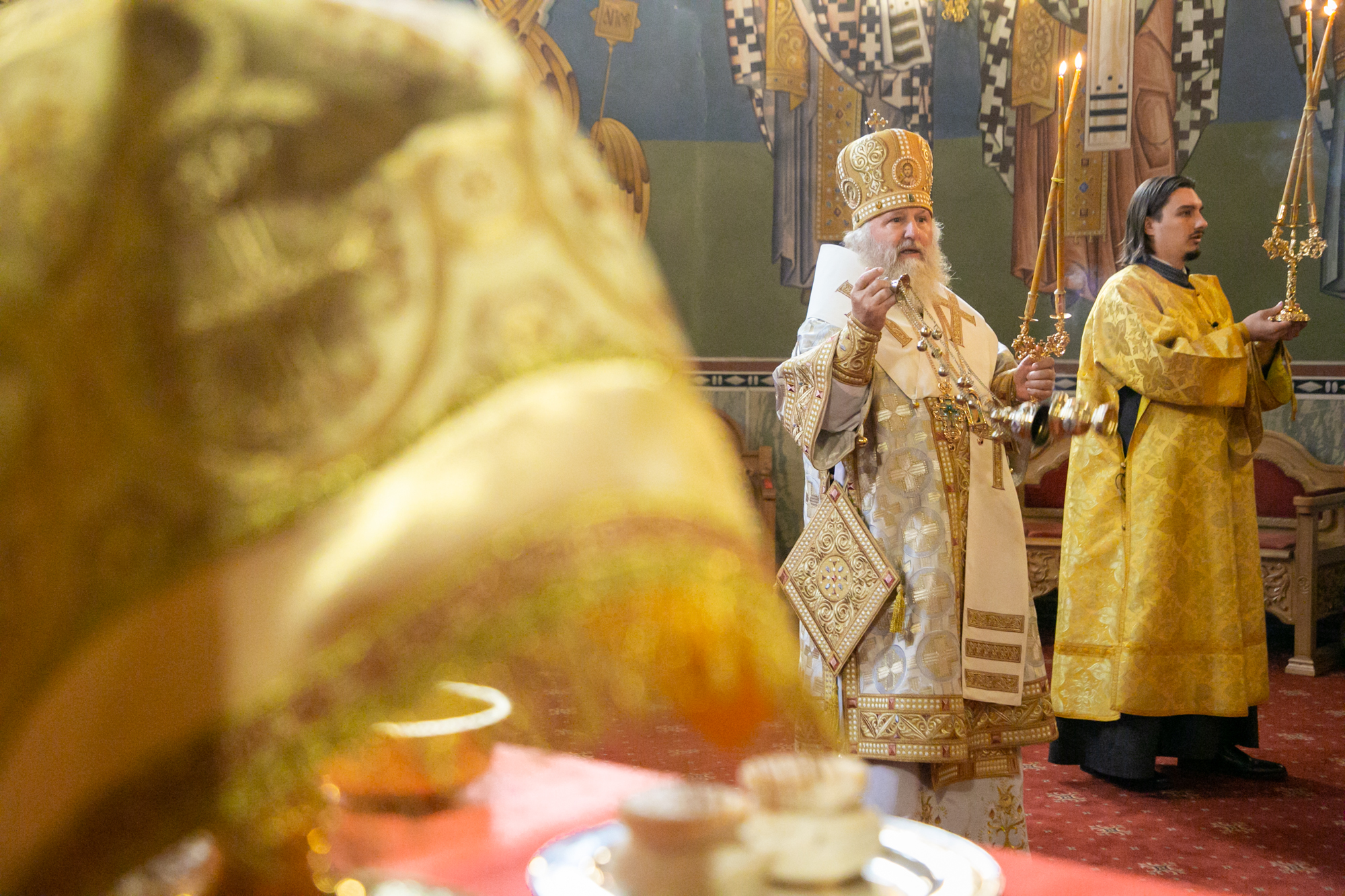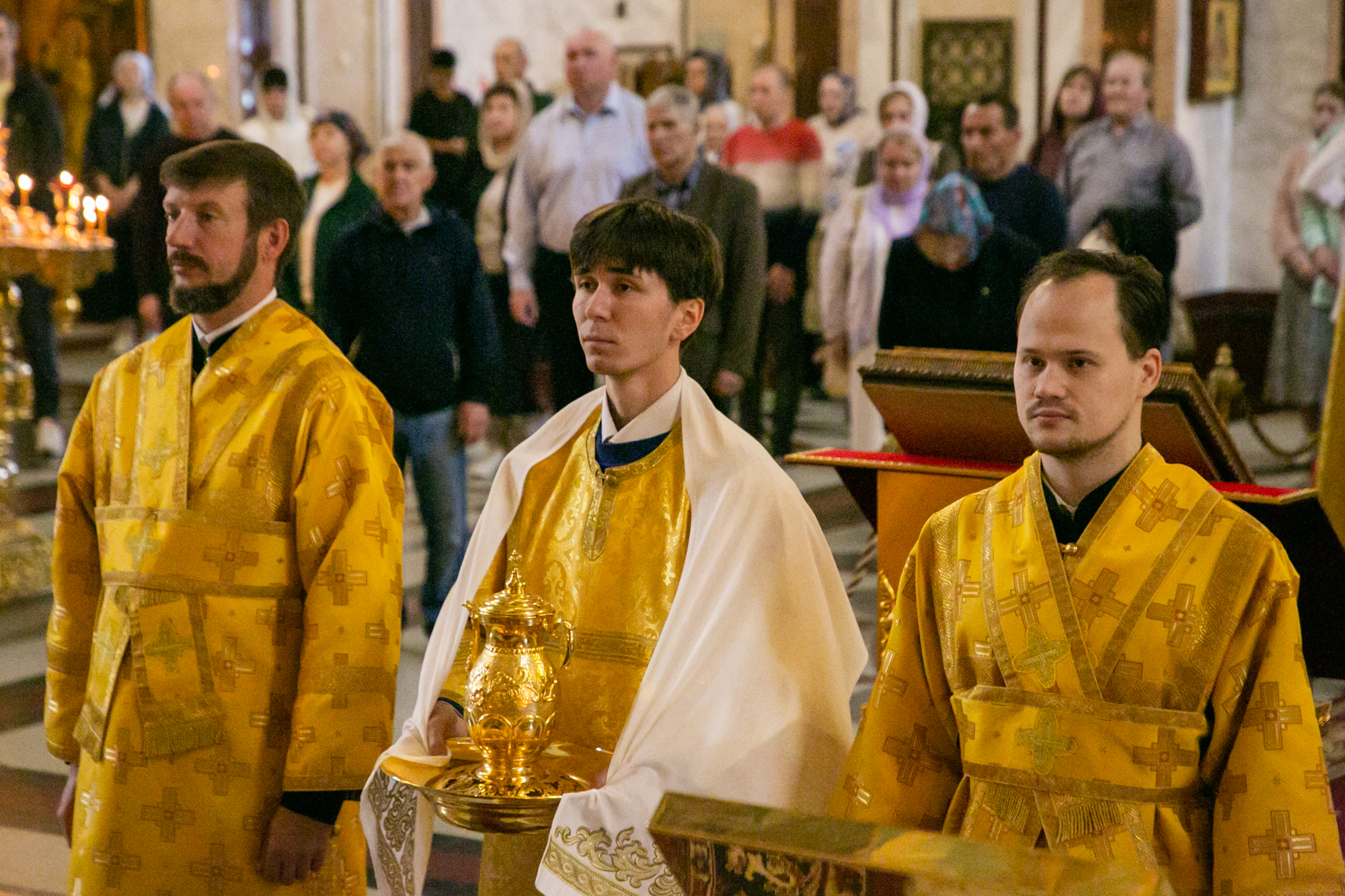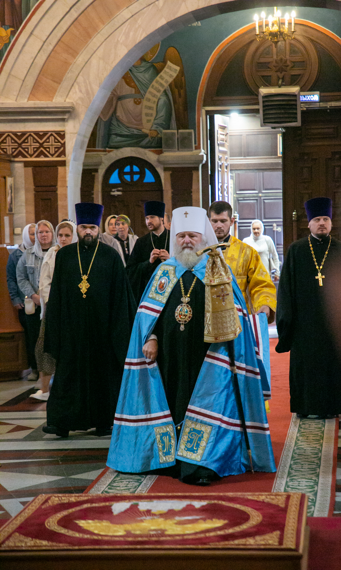Его Высокопреосвященству сослужили: благочинный Ханты-Мансийского благочиния иерей Димитрий Губанищев, духовенство собора.