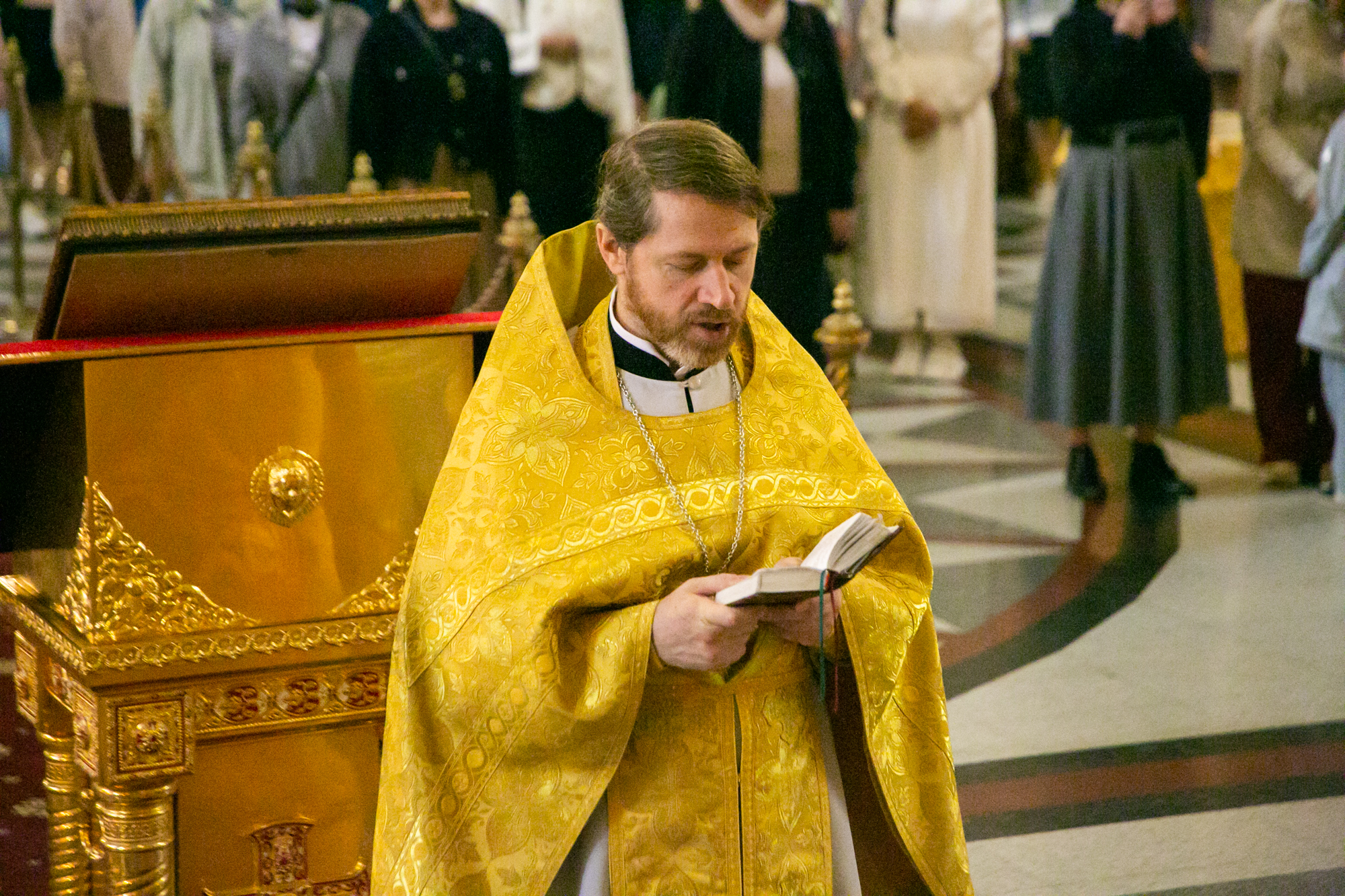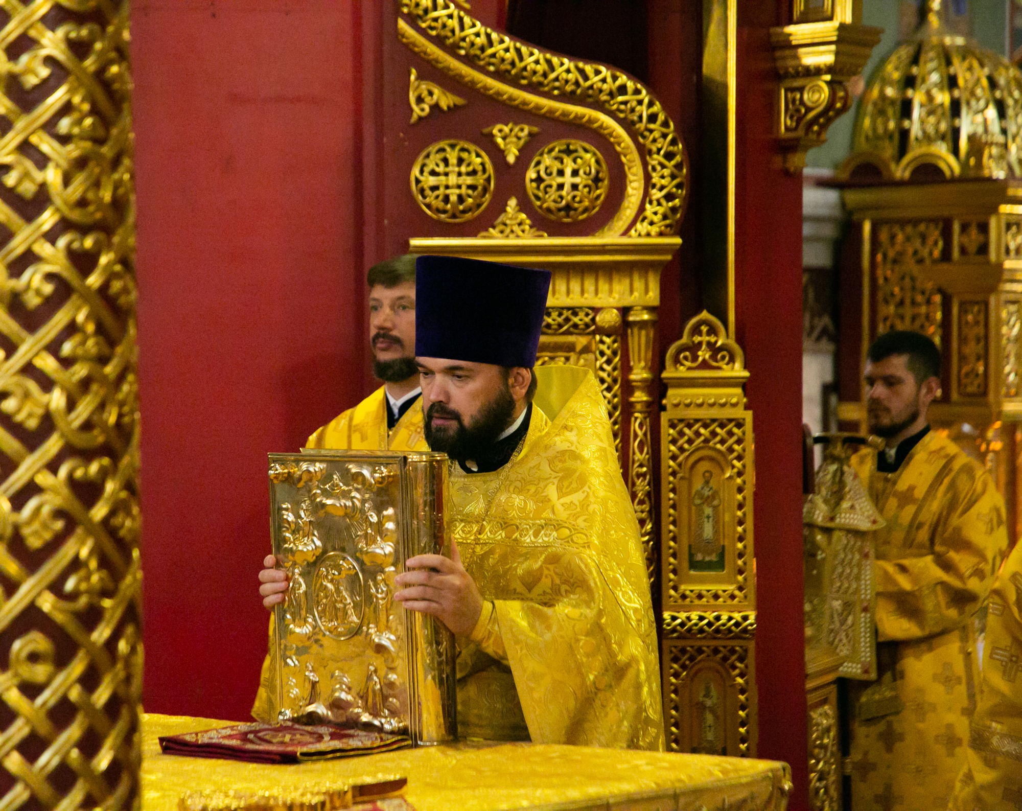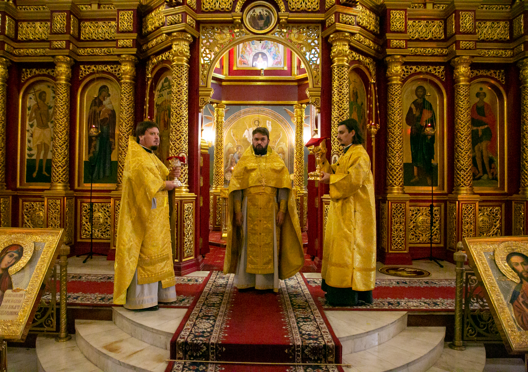 Его Высокопреосвященству сослужили: благочинный Ханты-Мансийского благочиния иерей Димитрий Губанищев, духовенство собора.