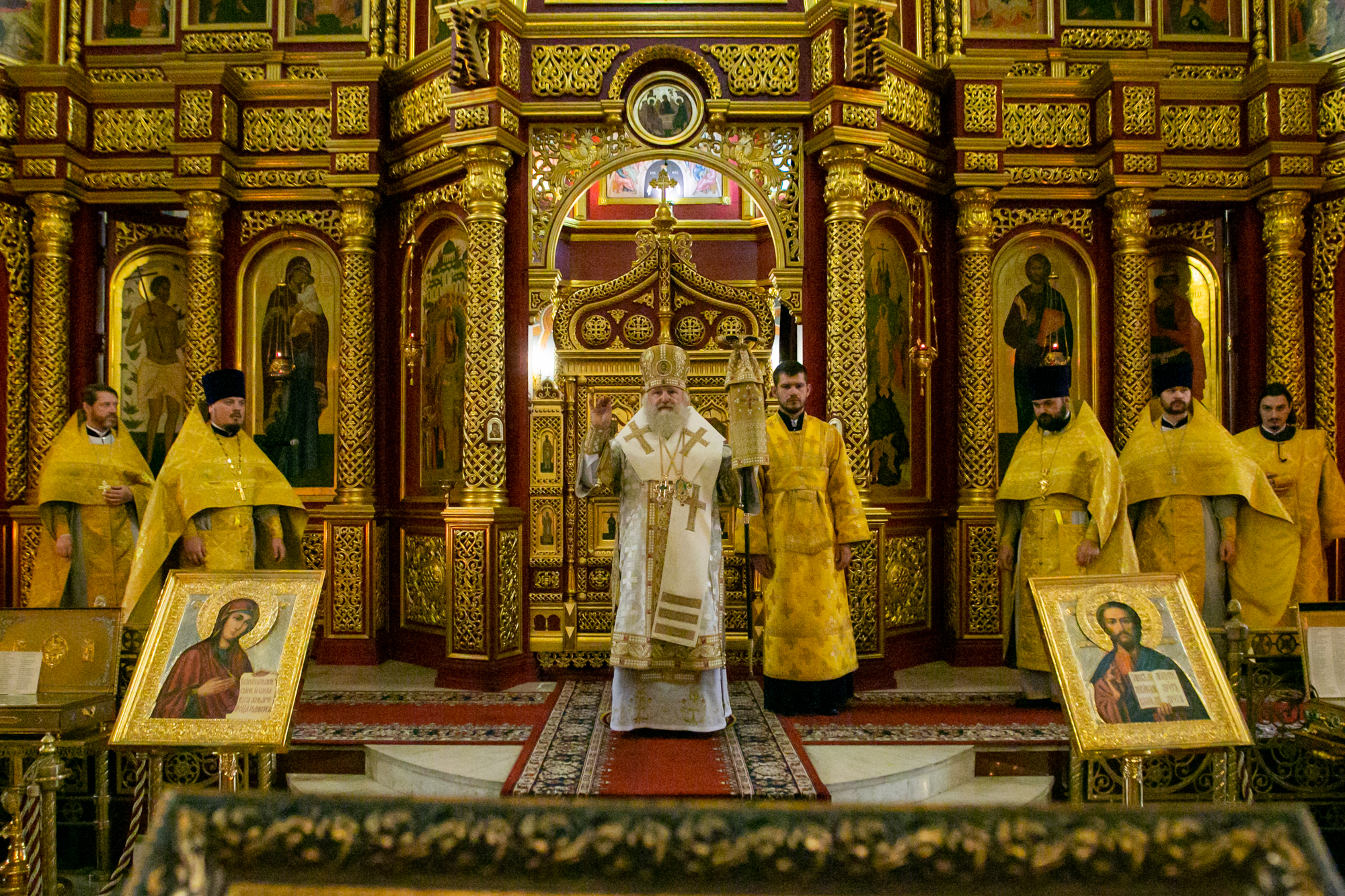 В Неделю 7-ю по Пятидесятнице митрополит Павел совершил Литургию в Воскресенском кафедральном соборе г. Ханты-Мансийска.