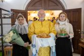 Всех вас, мои дорогие, ещё раз благодарю за общие молитвы и поздравляю с праздником благоверных князей Бориса и Глеба, который мы отмечаем сегодня, чтим этих пострадавших за Христа мучеников, и просим, чтобы они были нашими защитниками и заступниками православной веры. Хотел бы особо поблагодарить нашу Любовь Васильевну и поздравить её с 65 — летним юбилеем! Благодаря её стараниям и усилиям был построен храм в честь иконы Божией Матери «Всех скорбящих радость». Мы Вас поздравляем, желаем крепости сил, здоровья, многих благих, благословенных лет жизни! Храни всех Господь!»