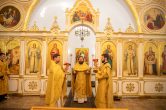 Его Высокопреосвященству сослужили: секретарь Ханты-Мансийской епархии игумен Антоний (Кирпичев), настоятель храма протоиерей Николай Силин, иерей Сергий Задорожний. Диаконский чин возглавил диакон Даниил Матвеев.