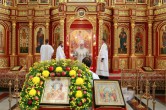 На прошлой неделе Господь сподобил меня побывать на Святой Горе Афон и привести оттуда в нашу митрополию очередную святыню — написанную афонскими монахами икону «Всецарица» для нашего строящегося храма в честь этой иконы. Этот святой образ сейчас пребывает в Преображенском соборе г. Сургута. По завершении строительства храма при областной онкобольнице икона будет передана туда, где и будет постоянно находиться.