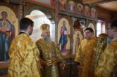 Его Высокопреосвященству сослужили: благочинный Ханты-Мансийского благочиния, протоиерей Сергей Кравцов; заведующий епархиальной канцелярией, иерей Сергий Нагорный; настоятель храма, иерей Евгений Набоков; диакон Даниил Матвеев. За Богослужением молилась глава п. Шапша Л. А. Овчерюкова.